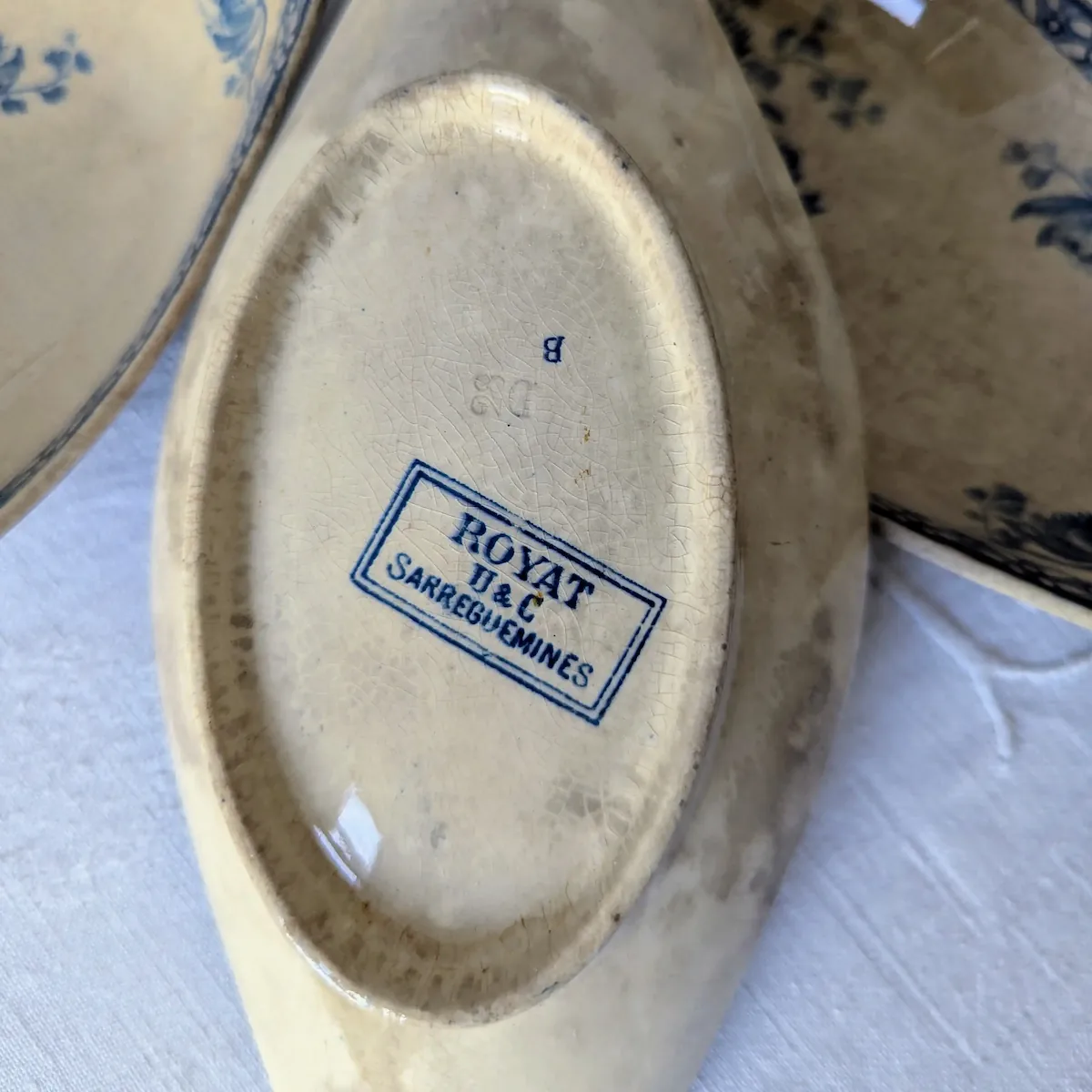 Le discernement se fait au toucher et à l’œil : les productions post-1920 ont souvent une glaçure plus lisse, moins « grasse », et des décors plus simplifiés. La complexité de la frise « Royal » et la profondeur du transfert bleu ici présent sont typiques de l’âge d’or de Saint-Amand et Sarreguemines. C’est un choix réfléchi pour qui cherche la véritable empreinte de la Belle Époque.