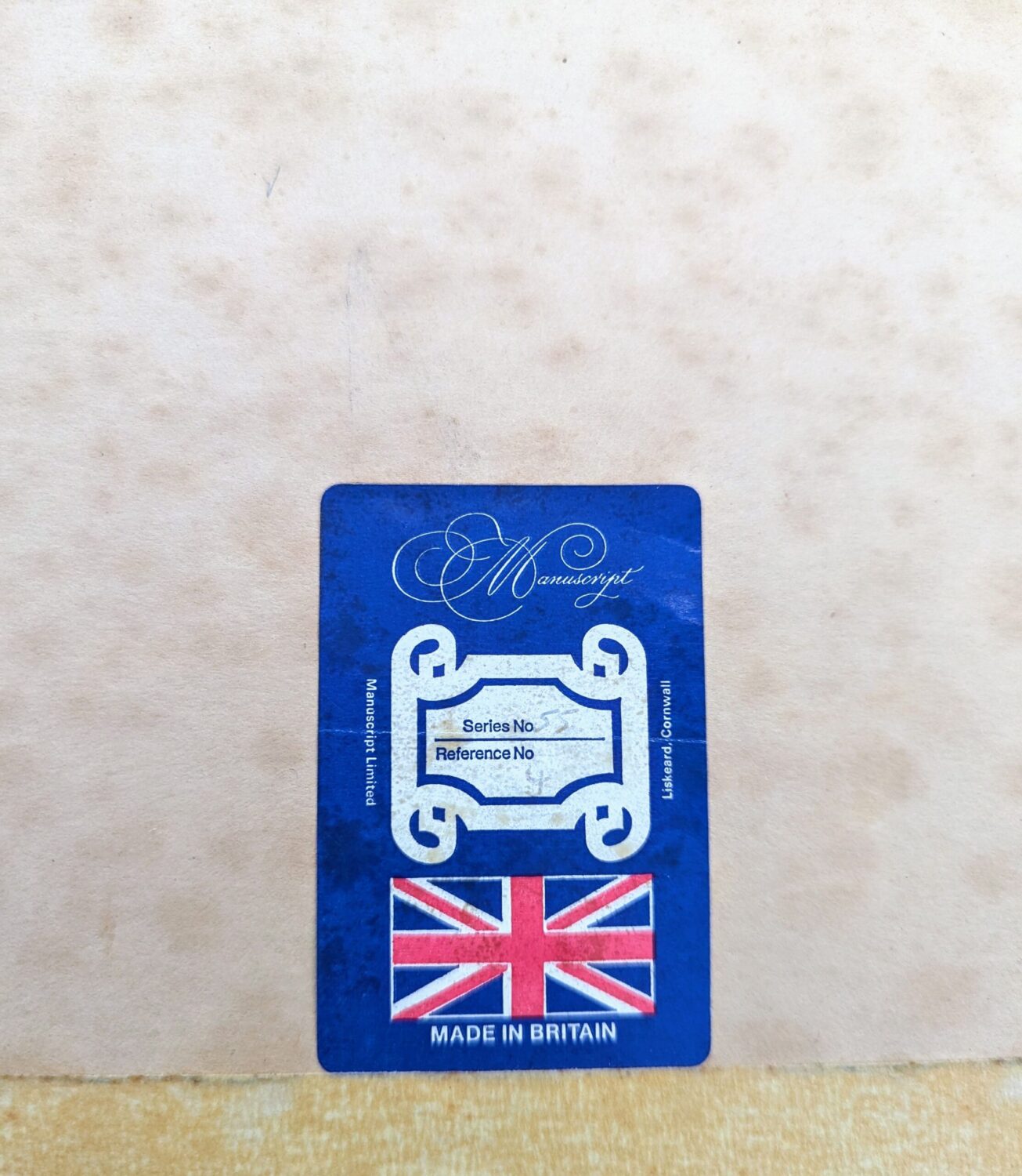 The reproduction is numbered 4 of series 55 manufactured in England by Manuscript Limited.