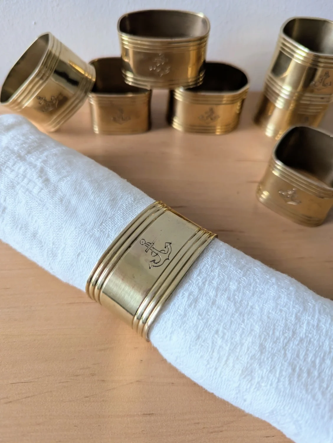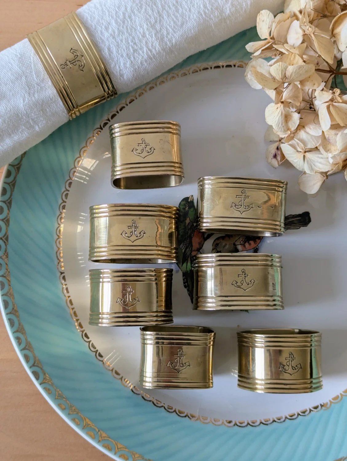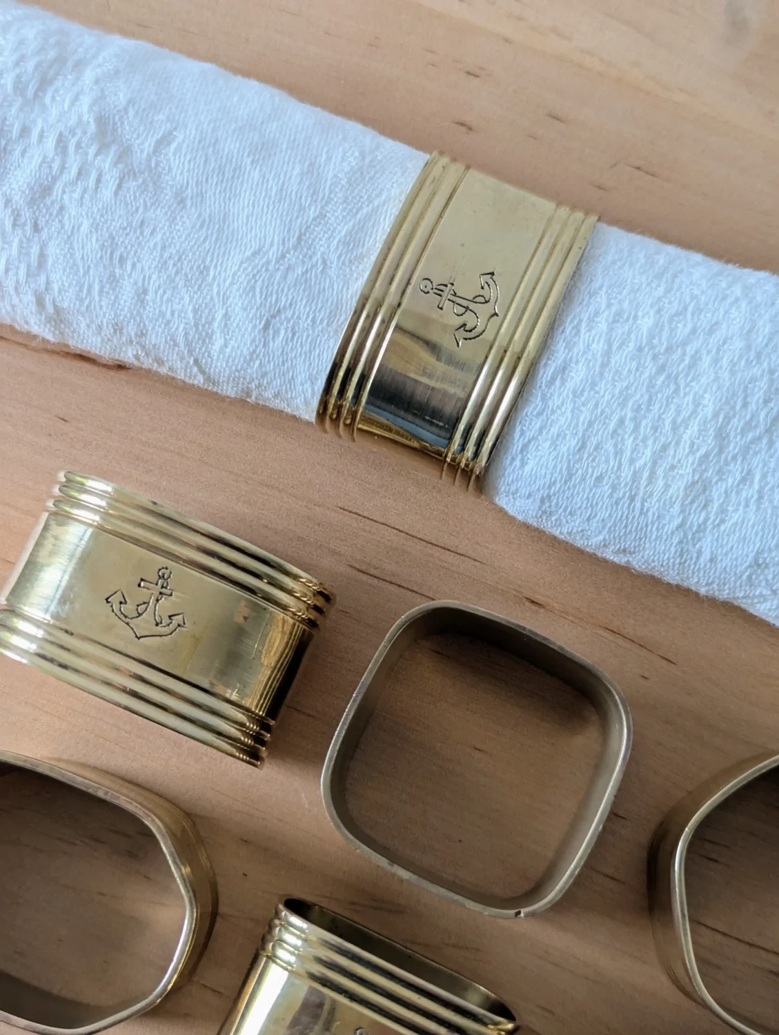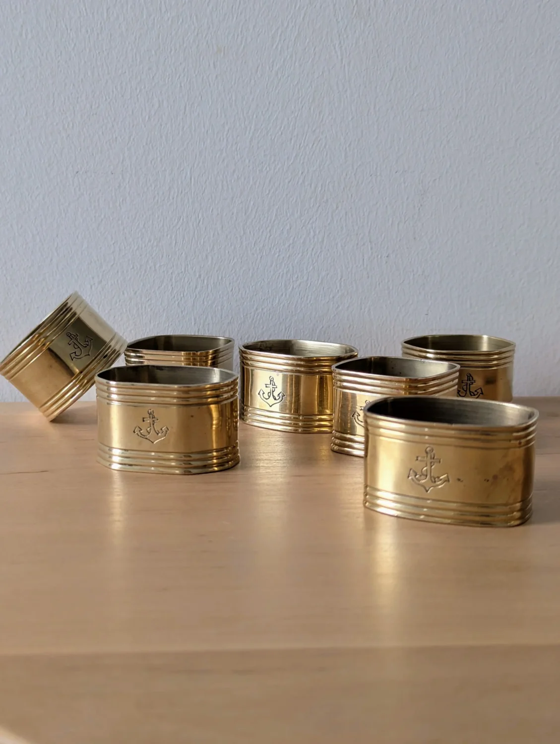 Ronds de serviette anciens en laiton – Élégance marine et charme intemporel