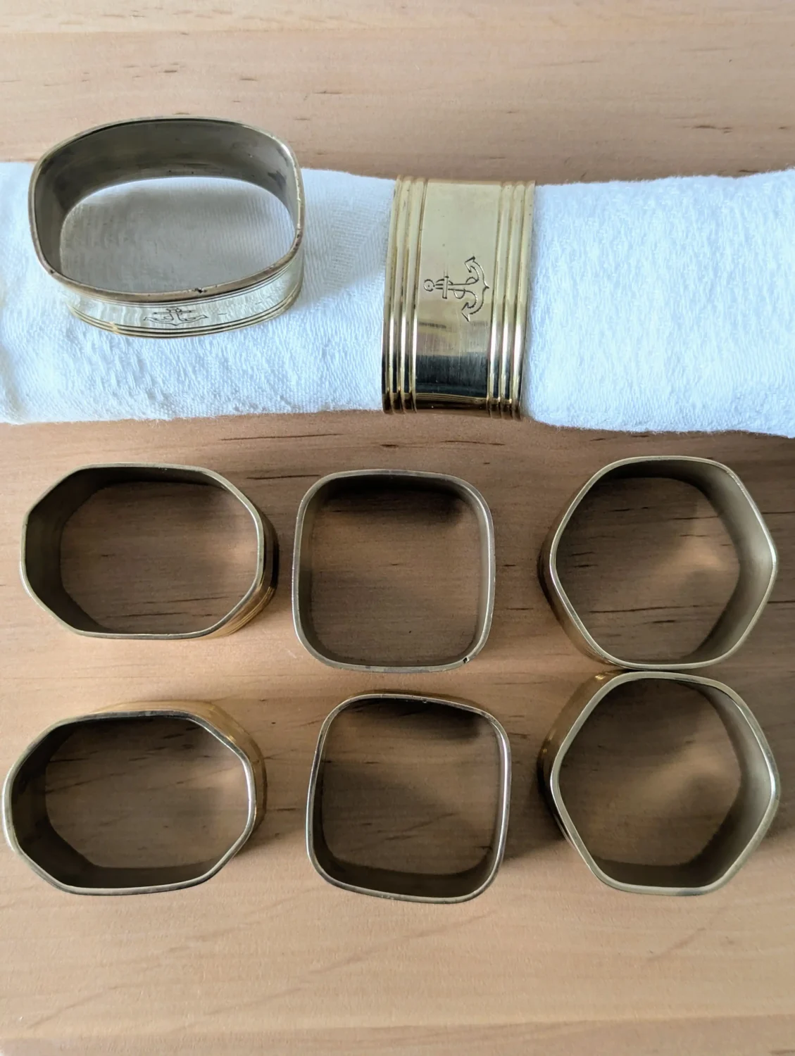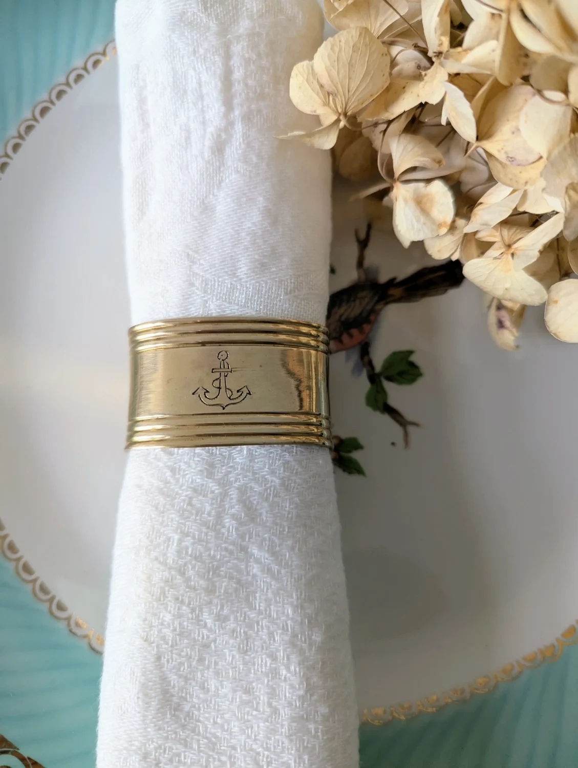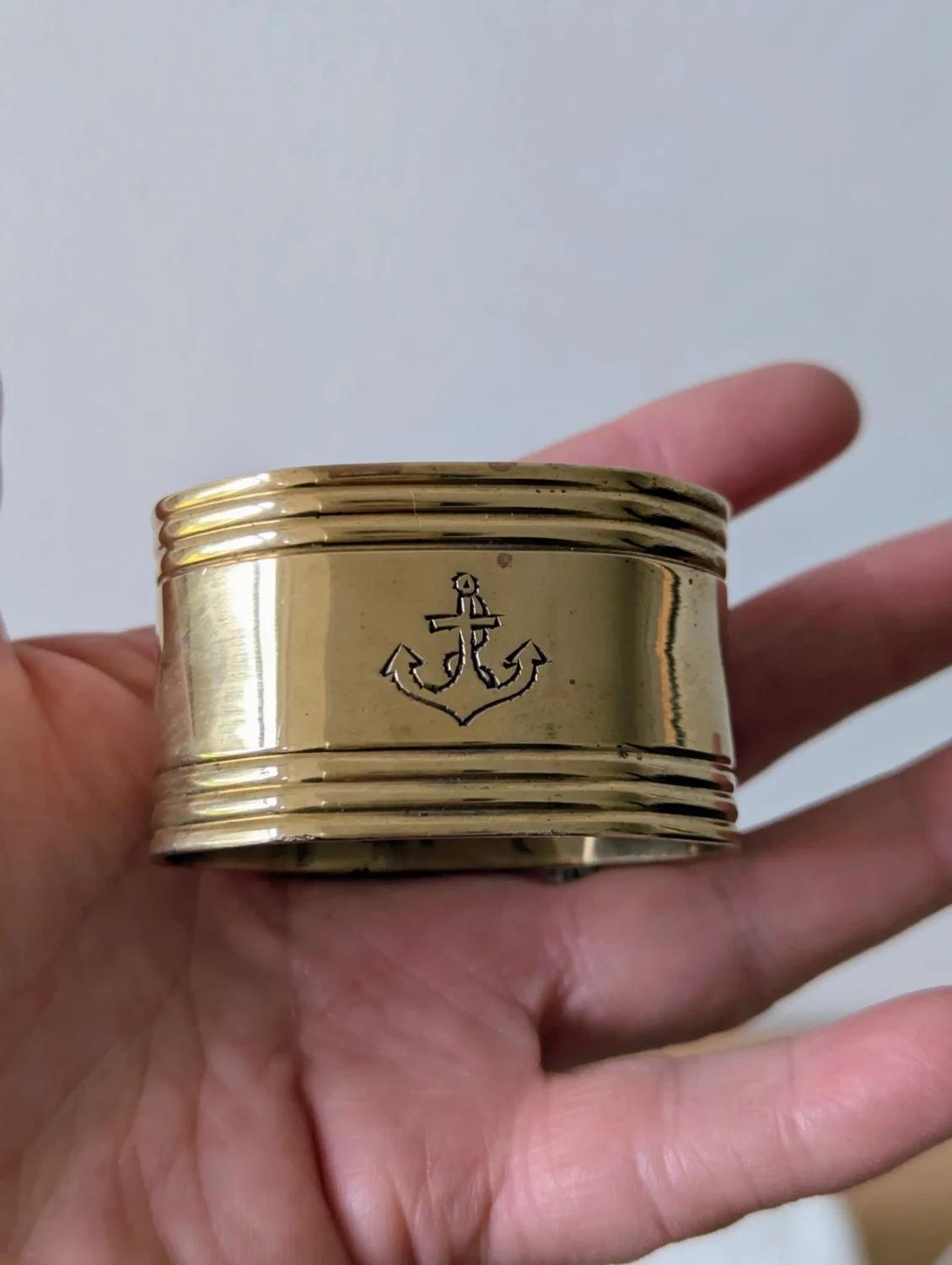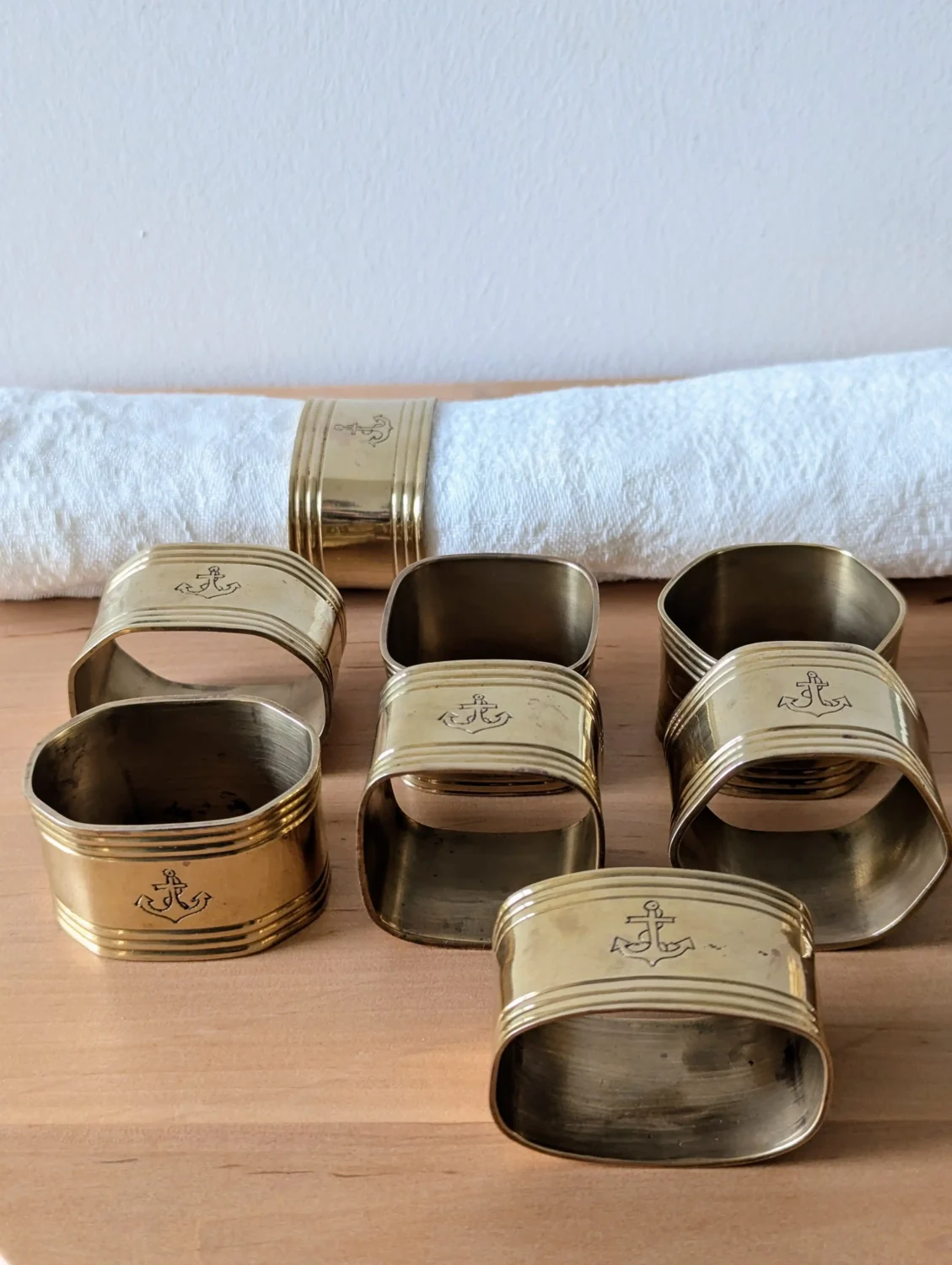Ronds de serviette anciens en laiton – Élégance marine et charme intemporel