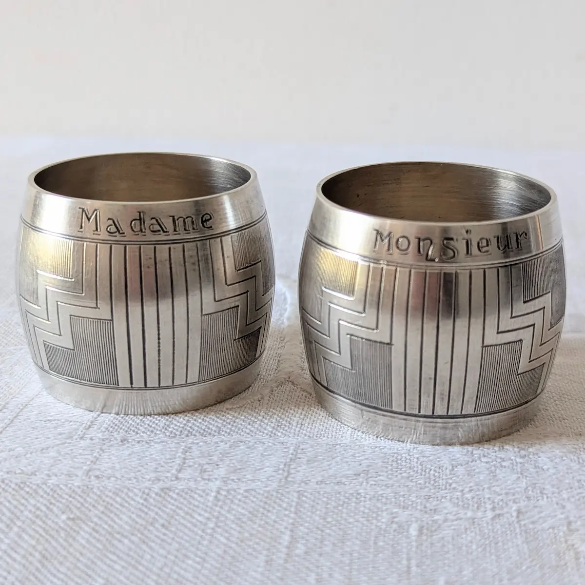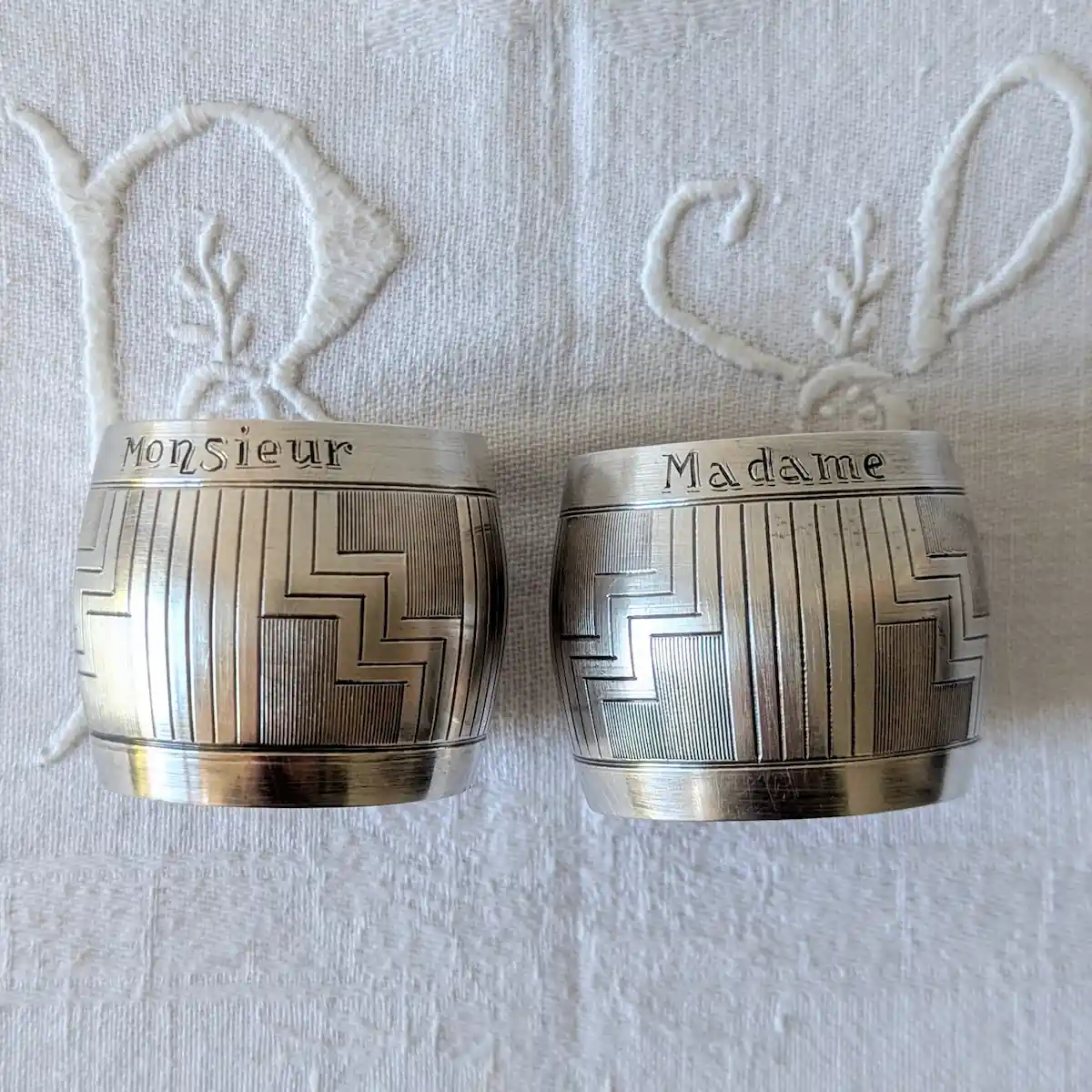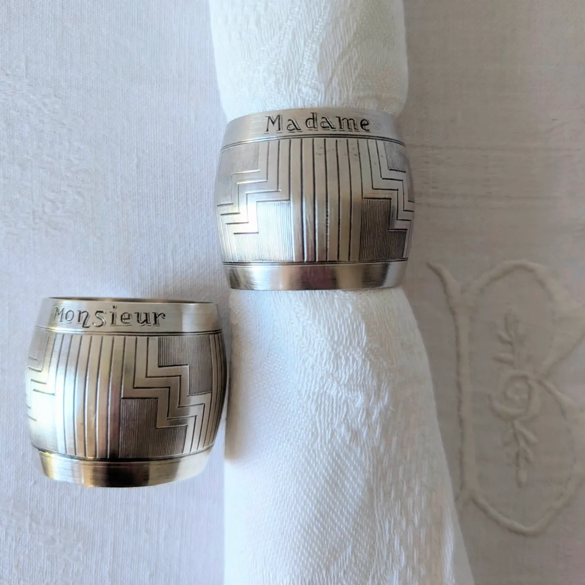 L’esthétique Art déco des ronds de serviette Monsieur Madame vintage