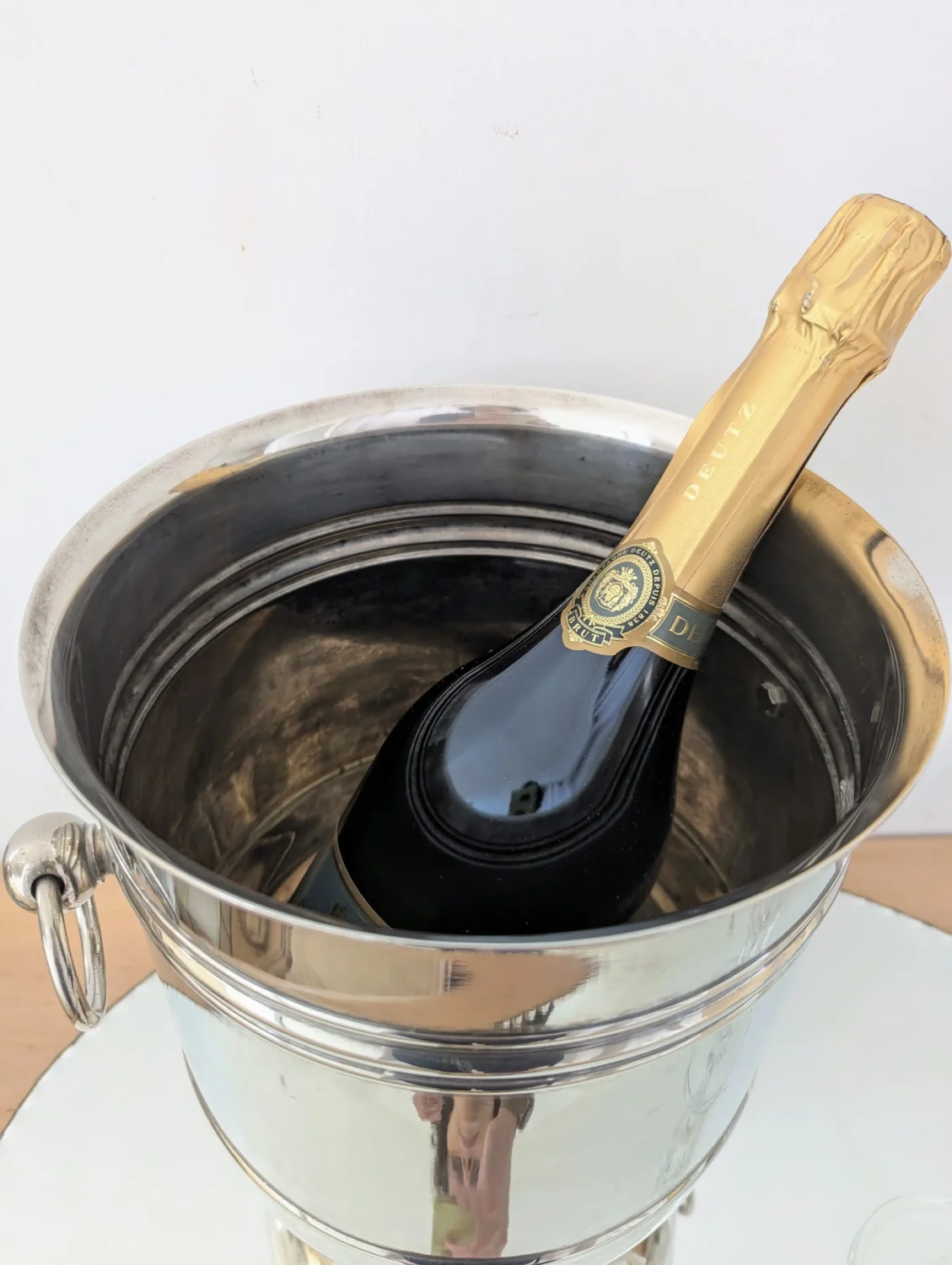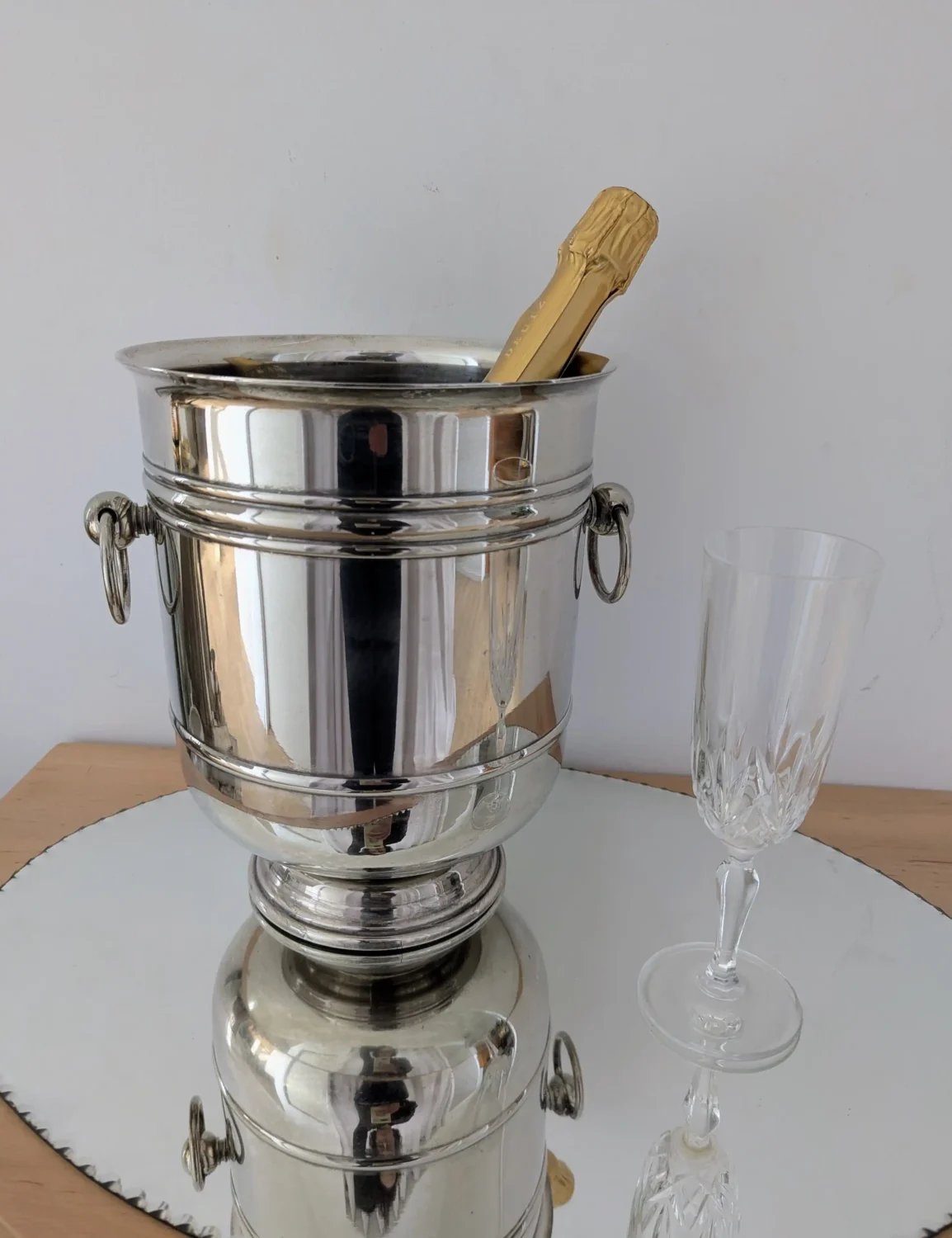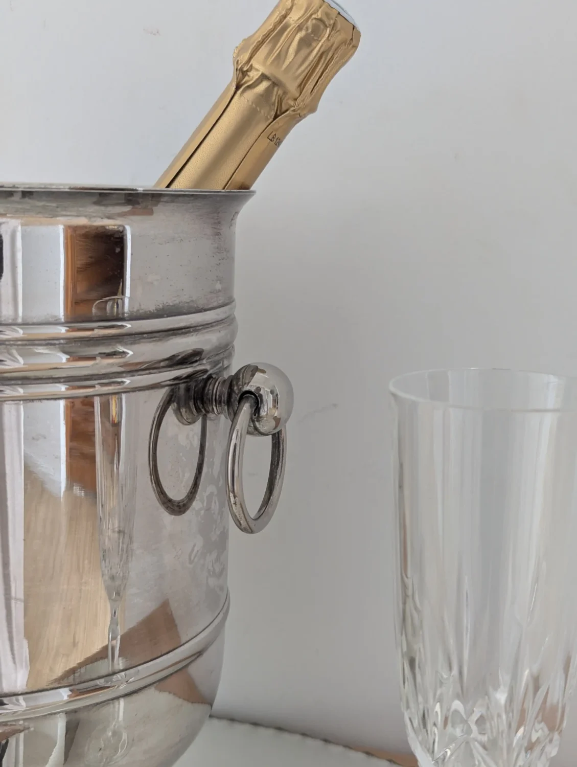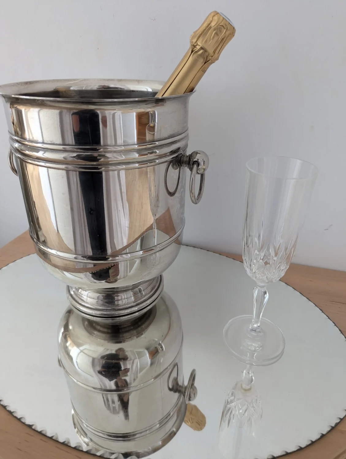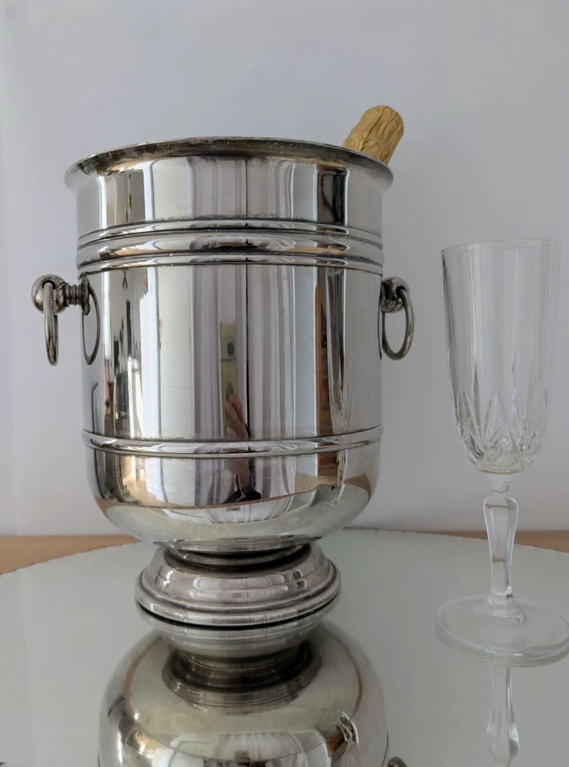 Seau champagne en métal argenté vintage PRODUX – Élégance festive et rétro