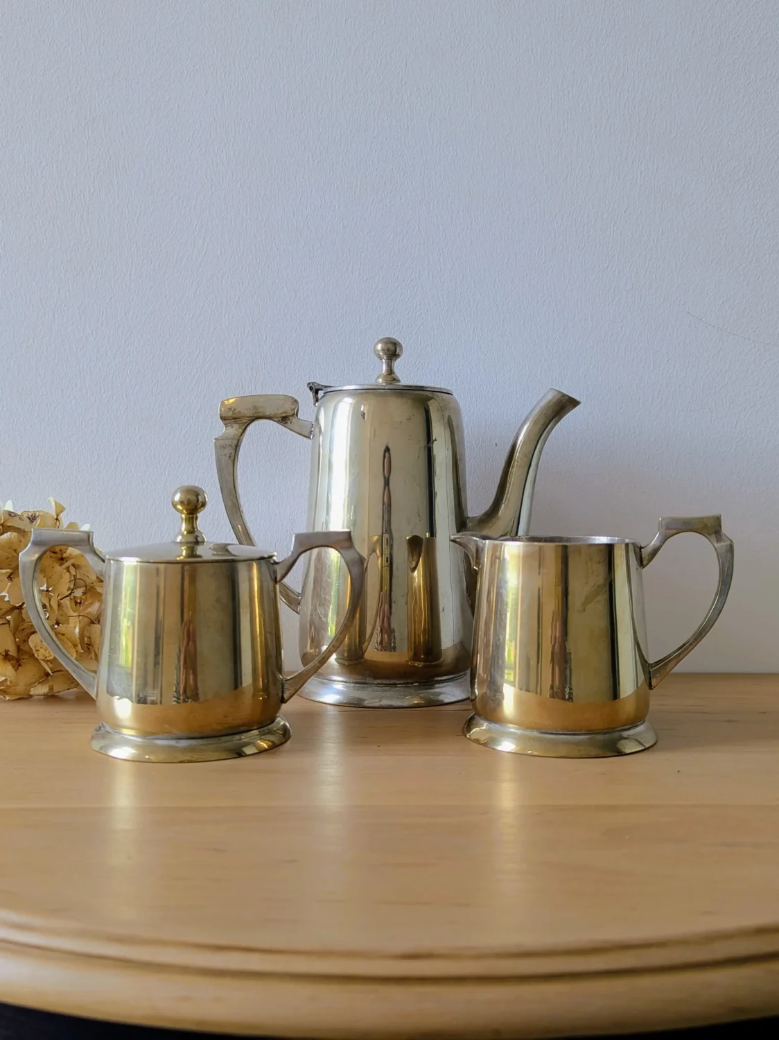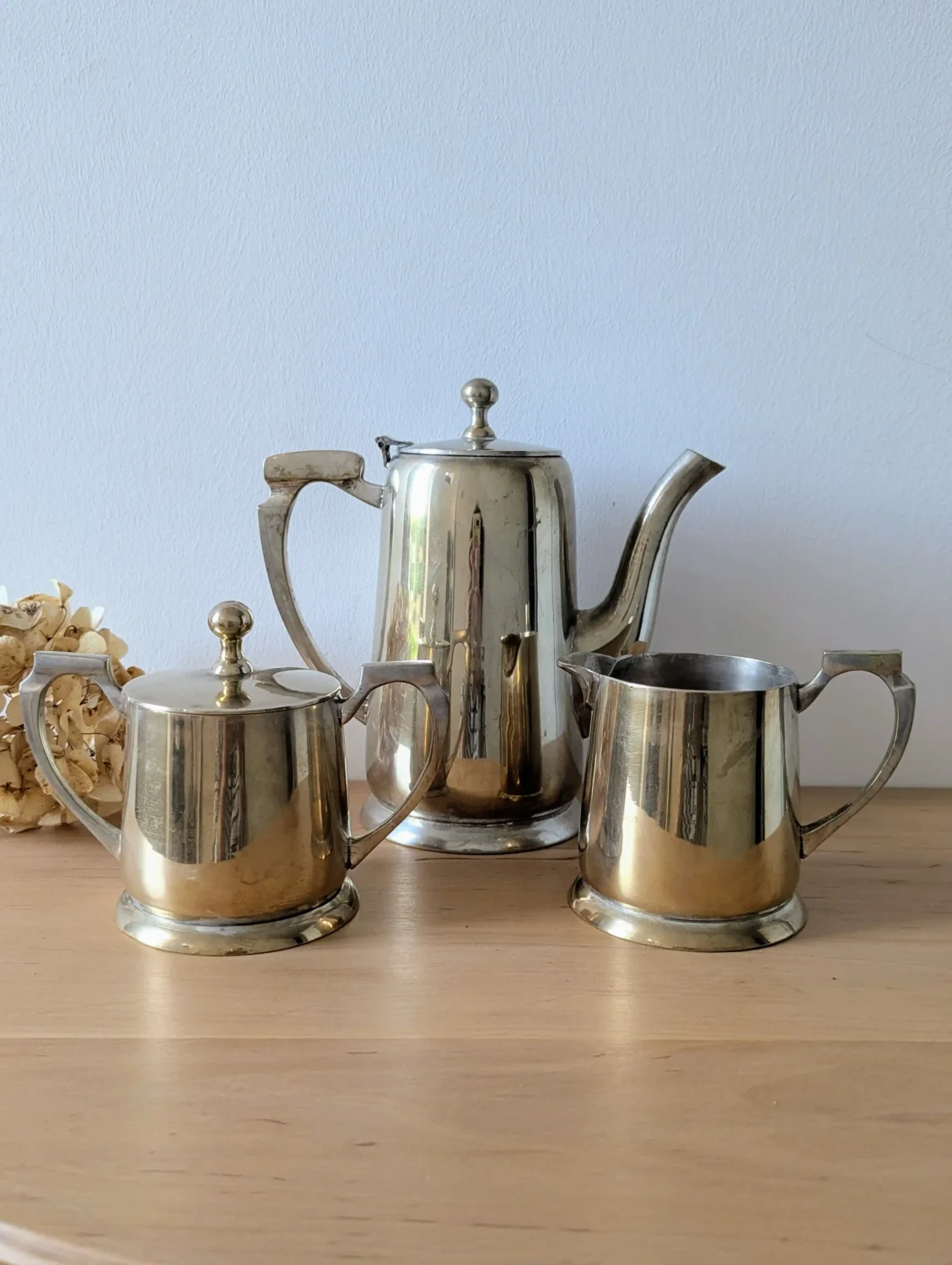 Service à café ancien en métal argenté: Élégance Art déco et charme intemporel