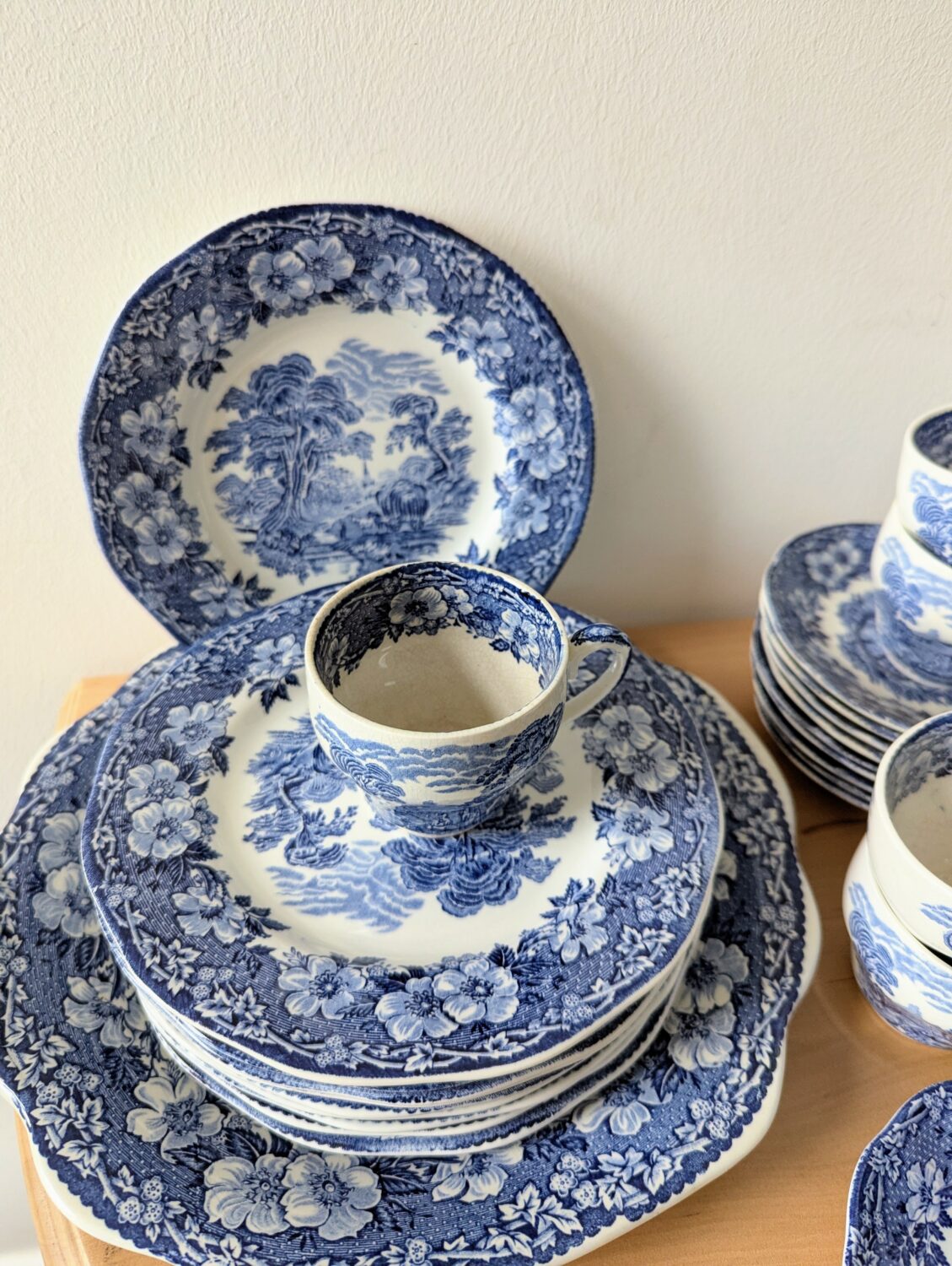 Service à café anglais Woodland : charme intemporel du bleu et blanc