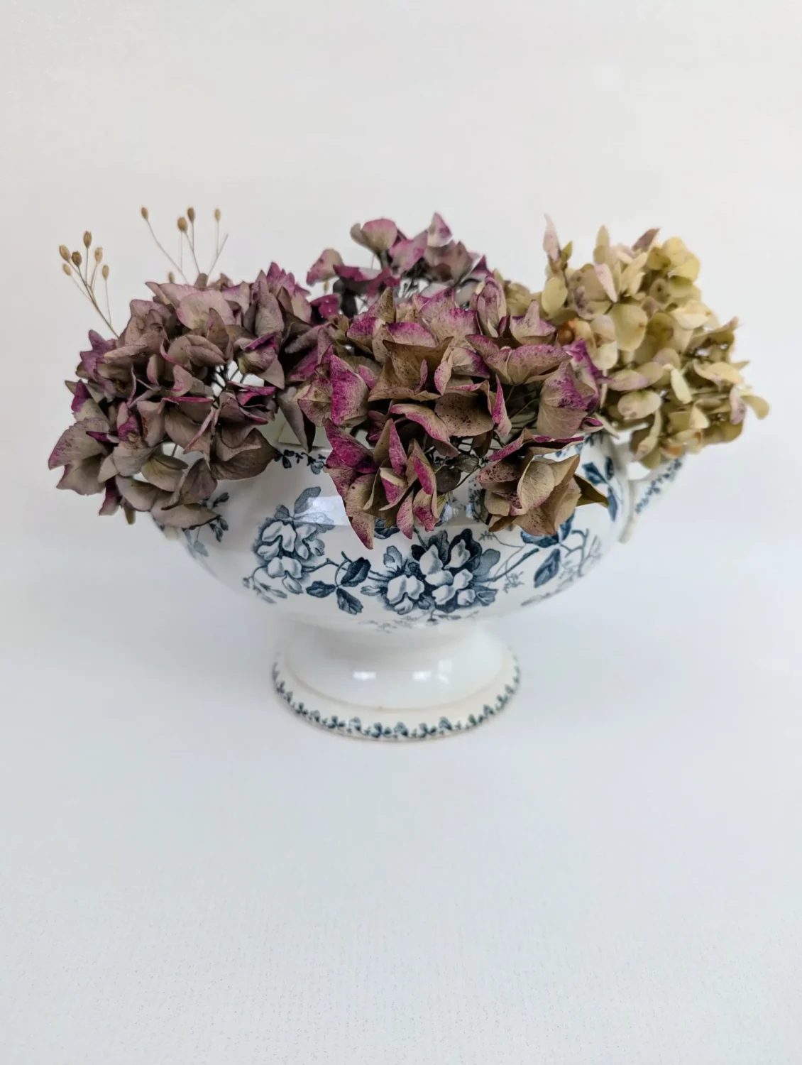 Sans couvercle, cette soupière ancienne St Amand offre de nombreuses possibilités. D’abord, elle peut parfaitement accueillir des plats familiaux généreux ou de belles salades estivales. Ensuite, elle se transforme très facilement en vide-poche élégant, en corbeille à fruits pleine de style, ou même en centre de table floral, remplie de fleurs séchées ou fraîches. Ce type de détournement, à la fois décoratif et fonctionnel, s’intègre dans tous les intérieurs.