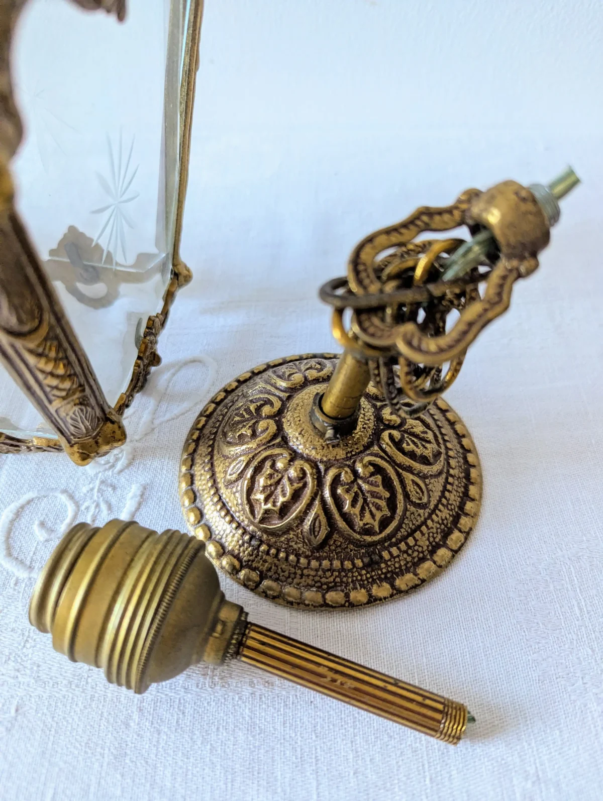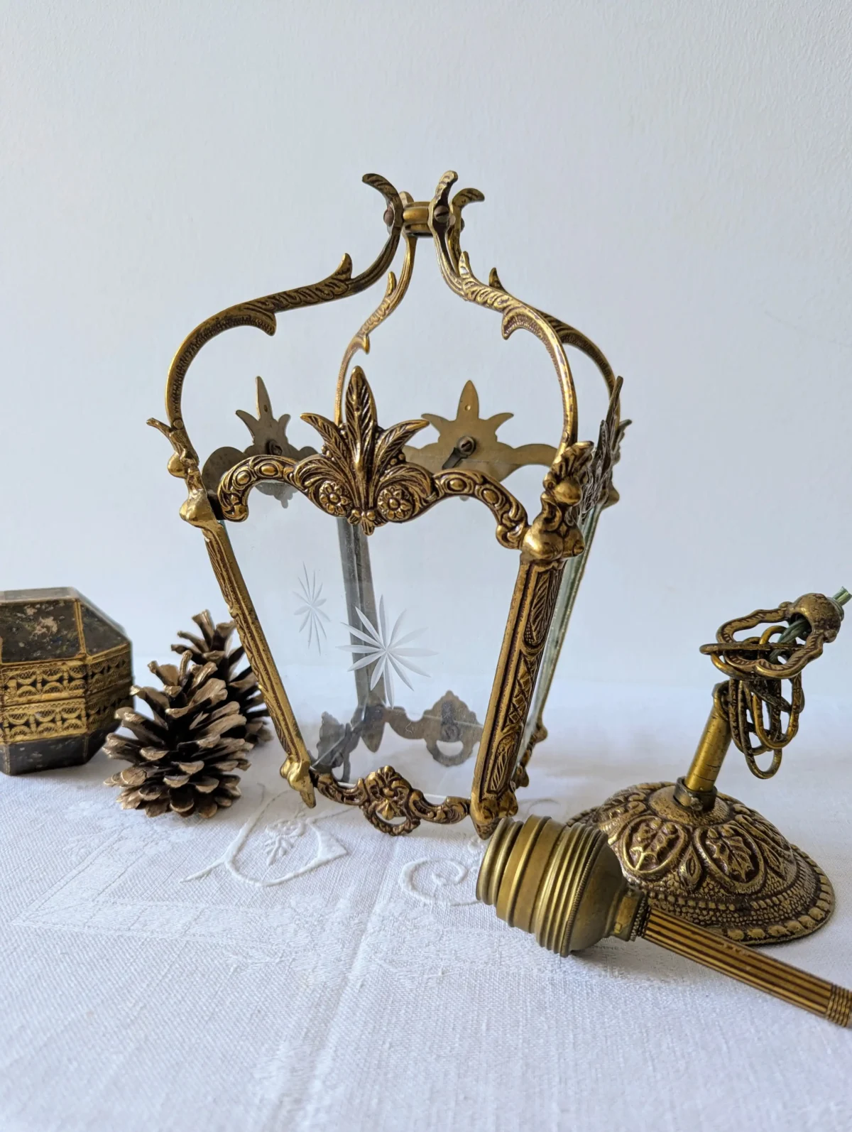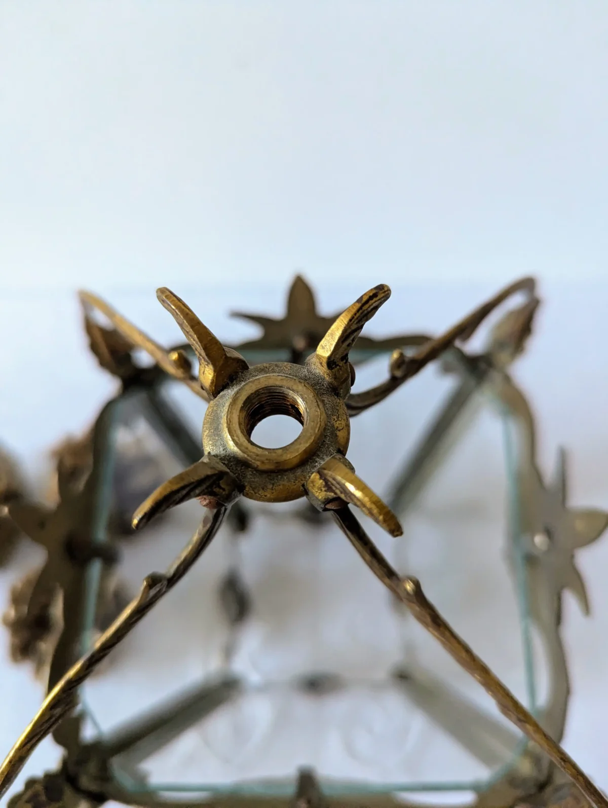 Suspension ancienne en laiton et verre ciselé bougeoir décoratif