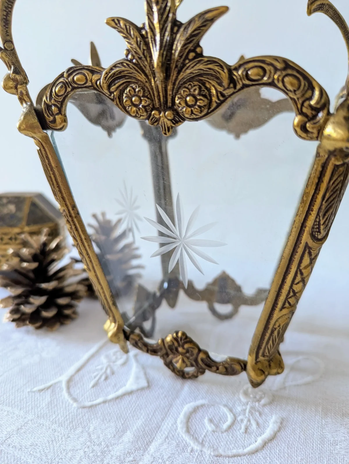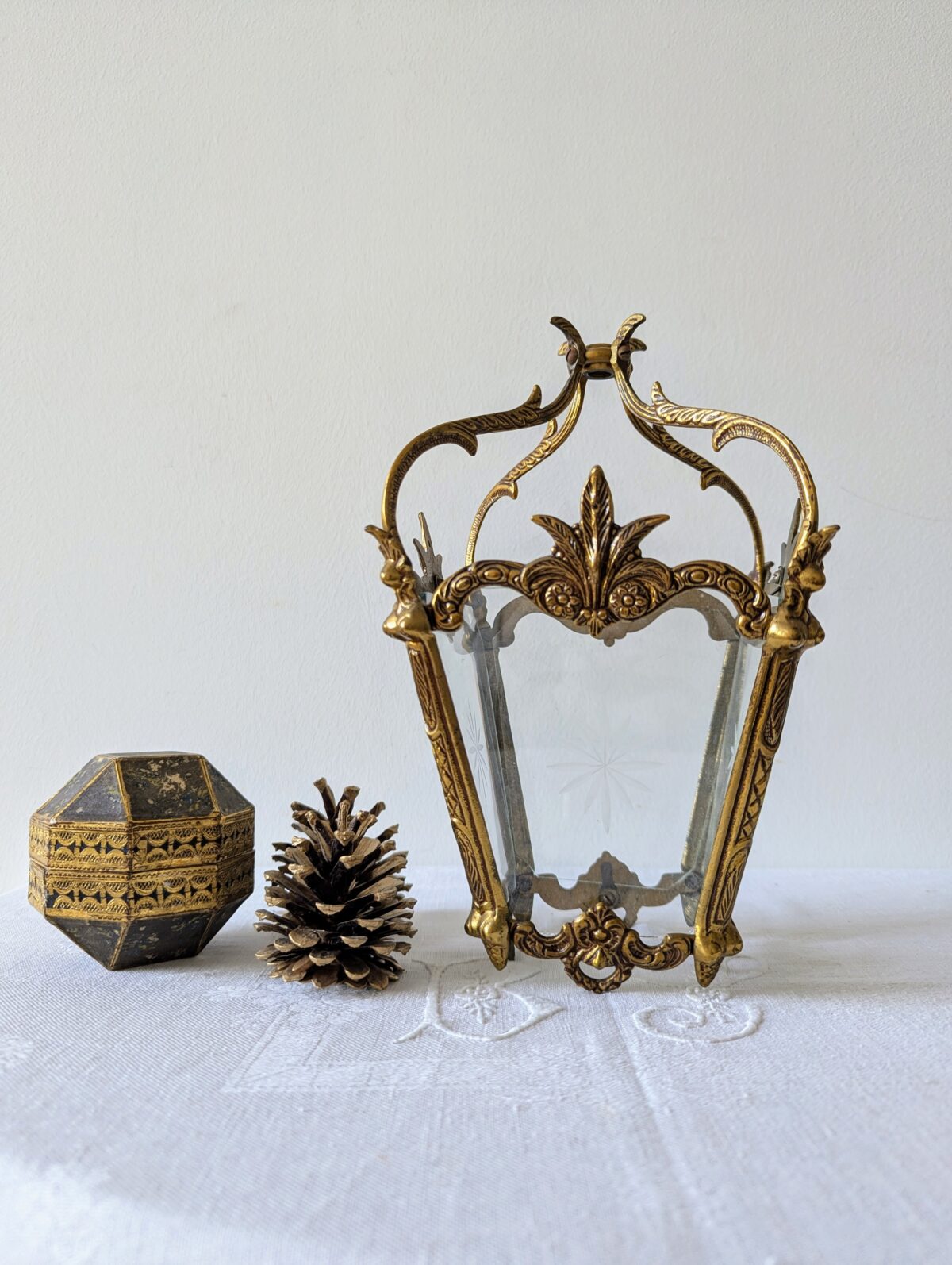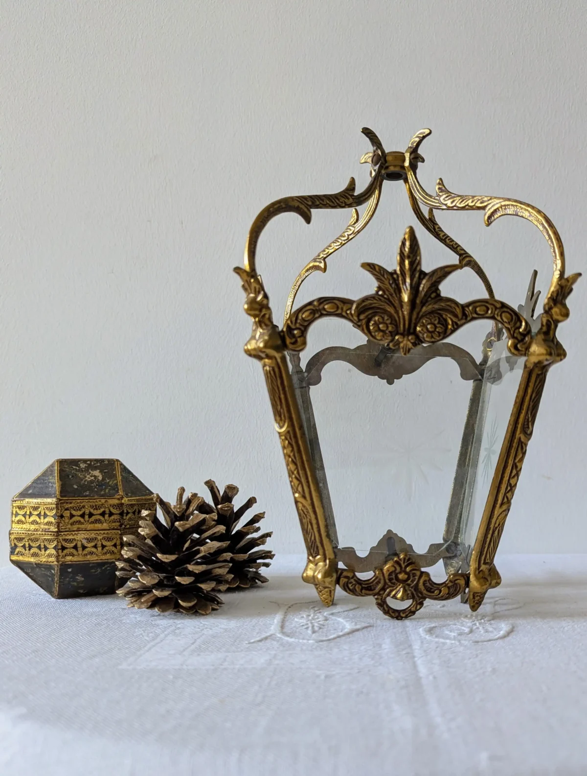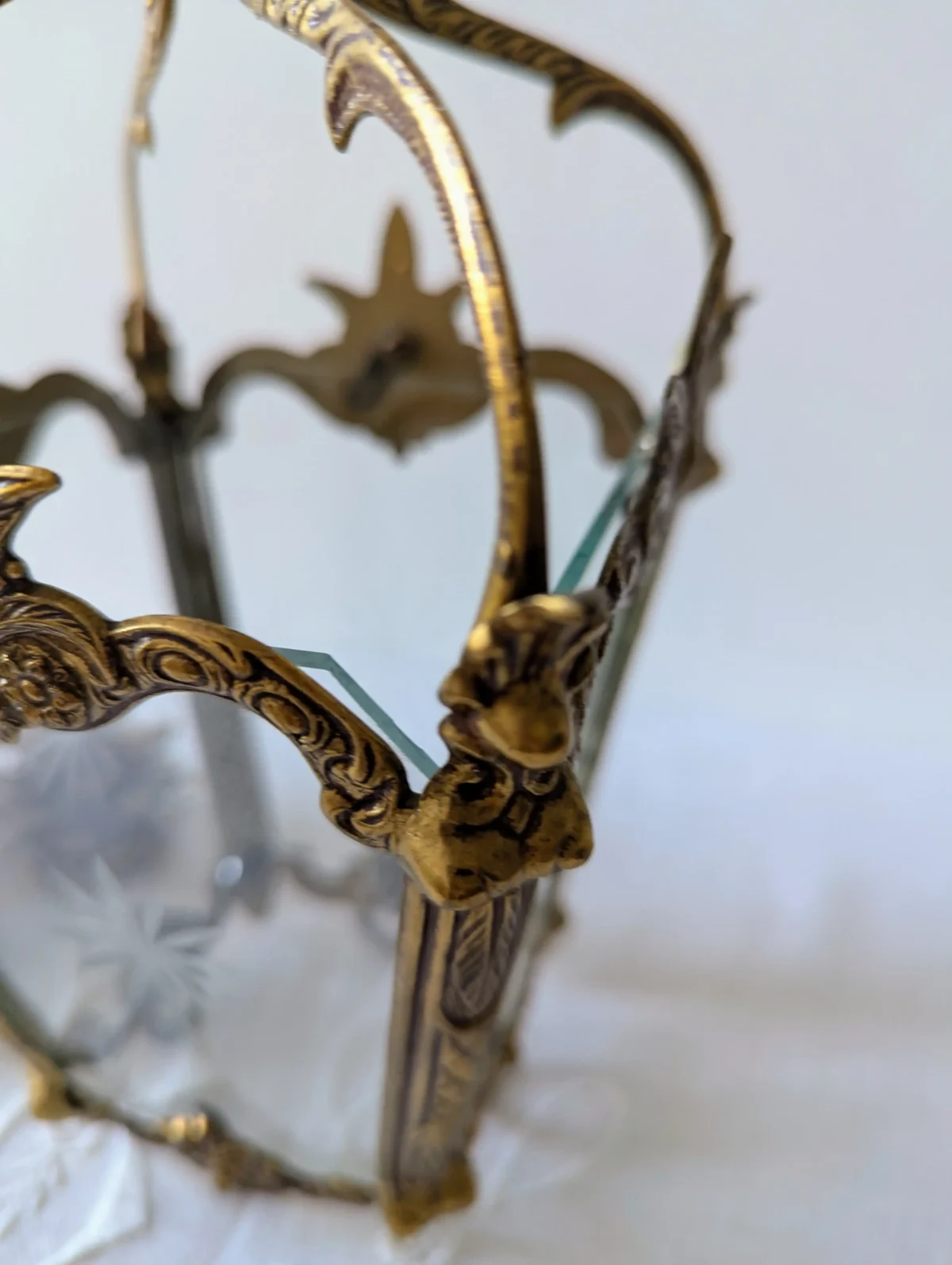 Suspension ancienne en laiton et verre ciselé bougeoir décoratif