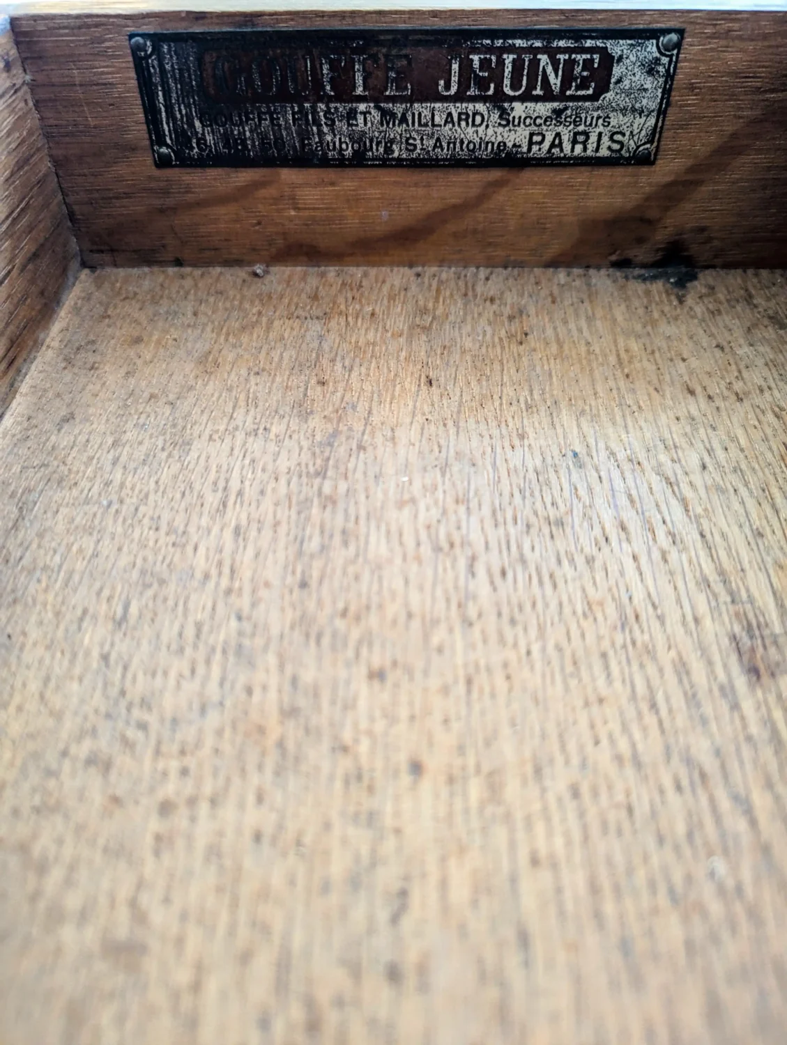 Apportez du caractère et du raffinement à votre intérieur avec cette table de chevet ancienne en bois marqueté et marbre rose, de style Louis XVI. Estampillée Gouffé Jeune Paris, une maison reconnue pour ses meubles de qualité, cette pièce authentique allie le charme du mobilier ancien et l’élégance intemporelle. Anciennement appelée meuble cabinet de toilette, cette table revisitée s’intègre aujourd’hui parfaitement dans une chambre contemporaine.