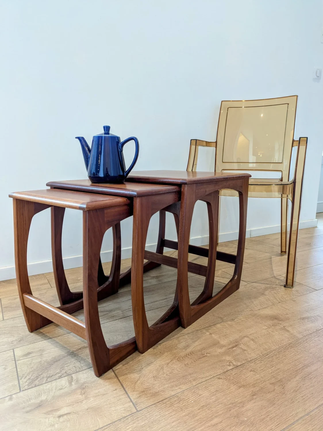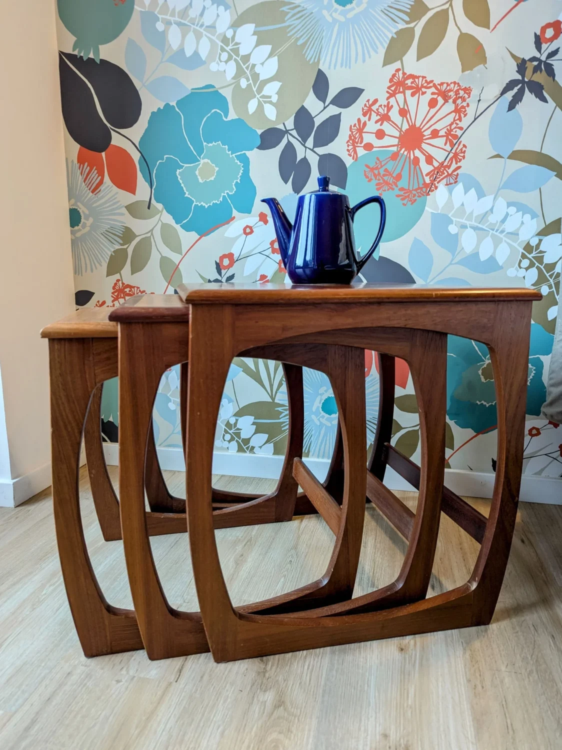 Trio de tables gigognes vintage en Teck années 60.