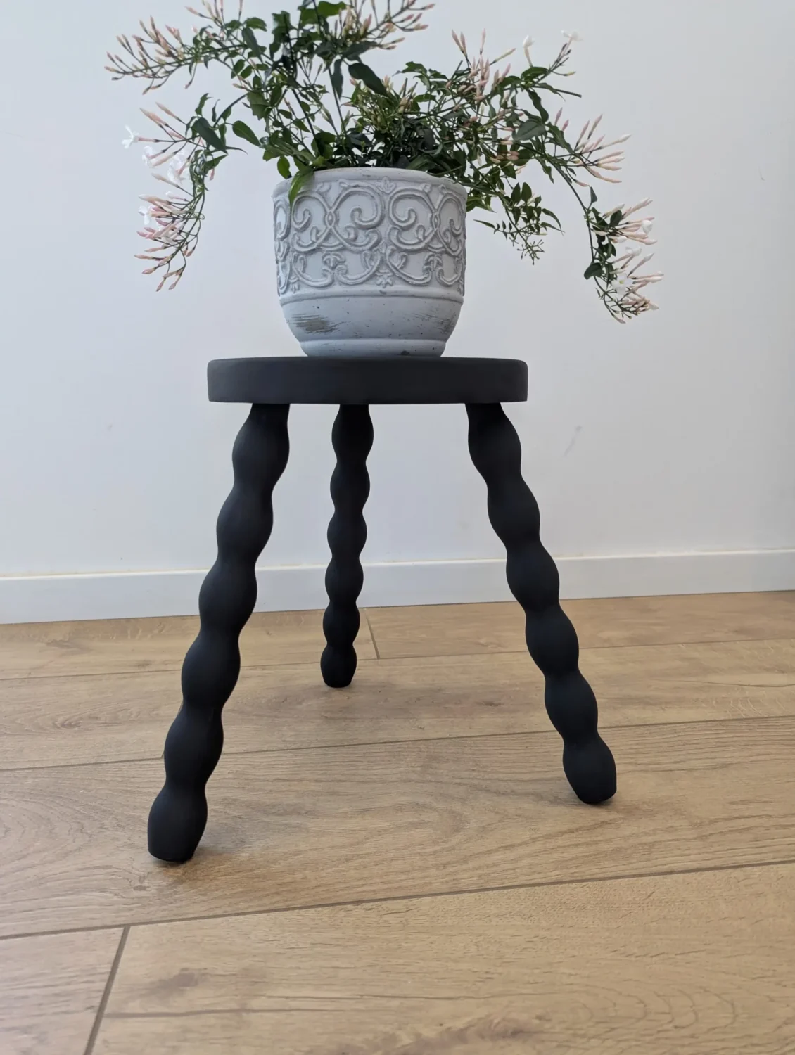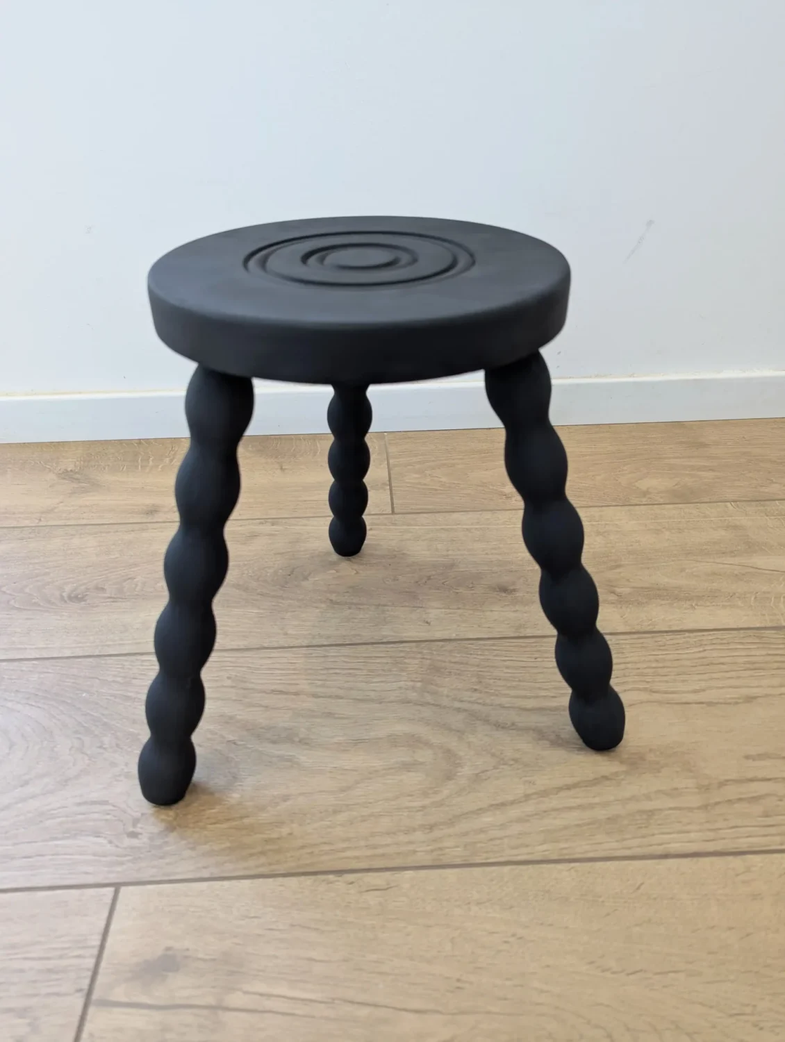 On aime ses 3 pieds à la forme originale bombée, son plateau de 24 cm de diamètre avec ses détails de cercles concentriques et sa couleur noir mat qui lui apporte une touche de modernisme.