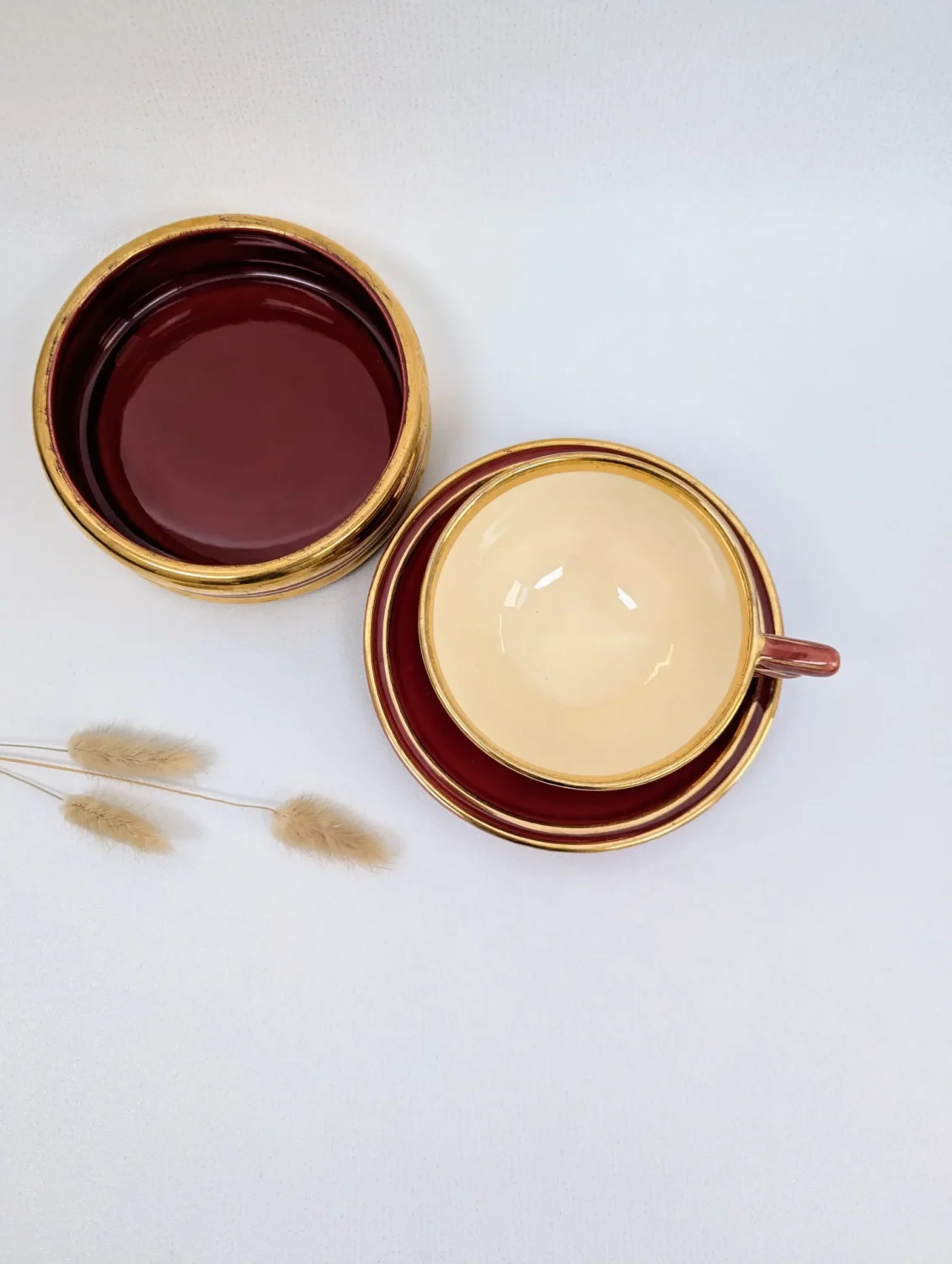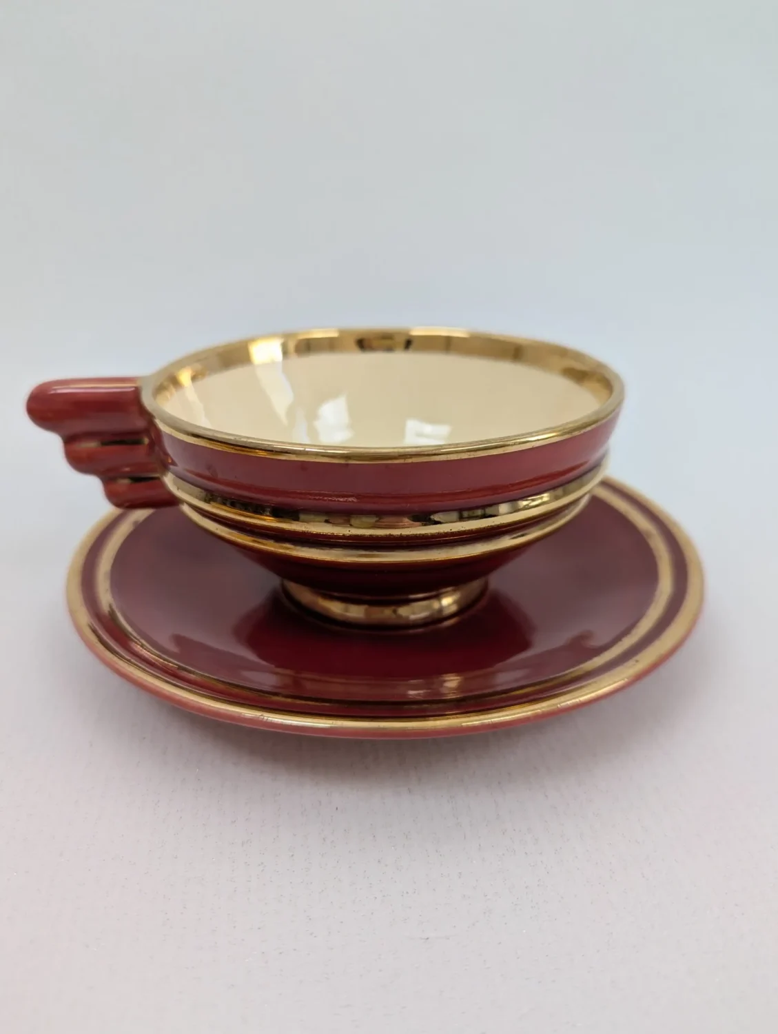 Bel ensemble composé d’une tasse et sa soucoupe ainsi que d’une coupelle en céramique Art Déco.