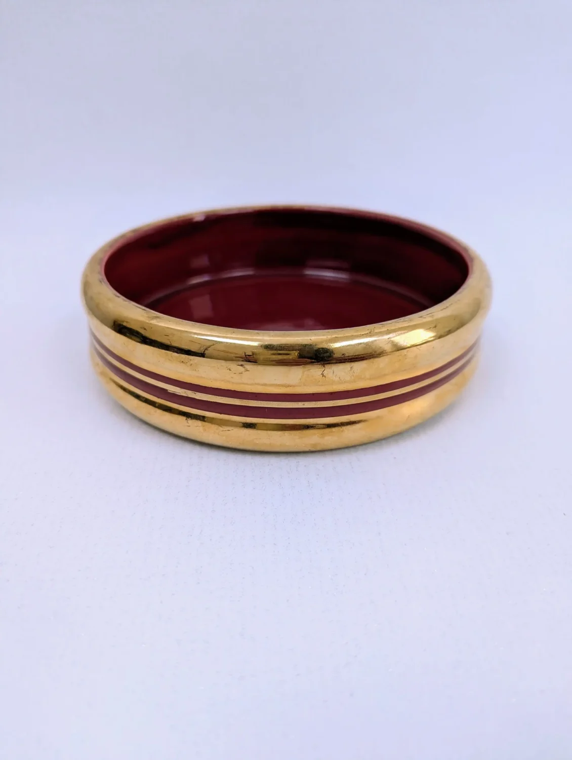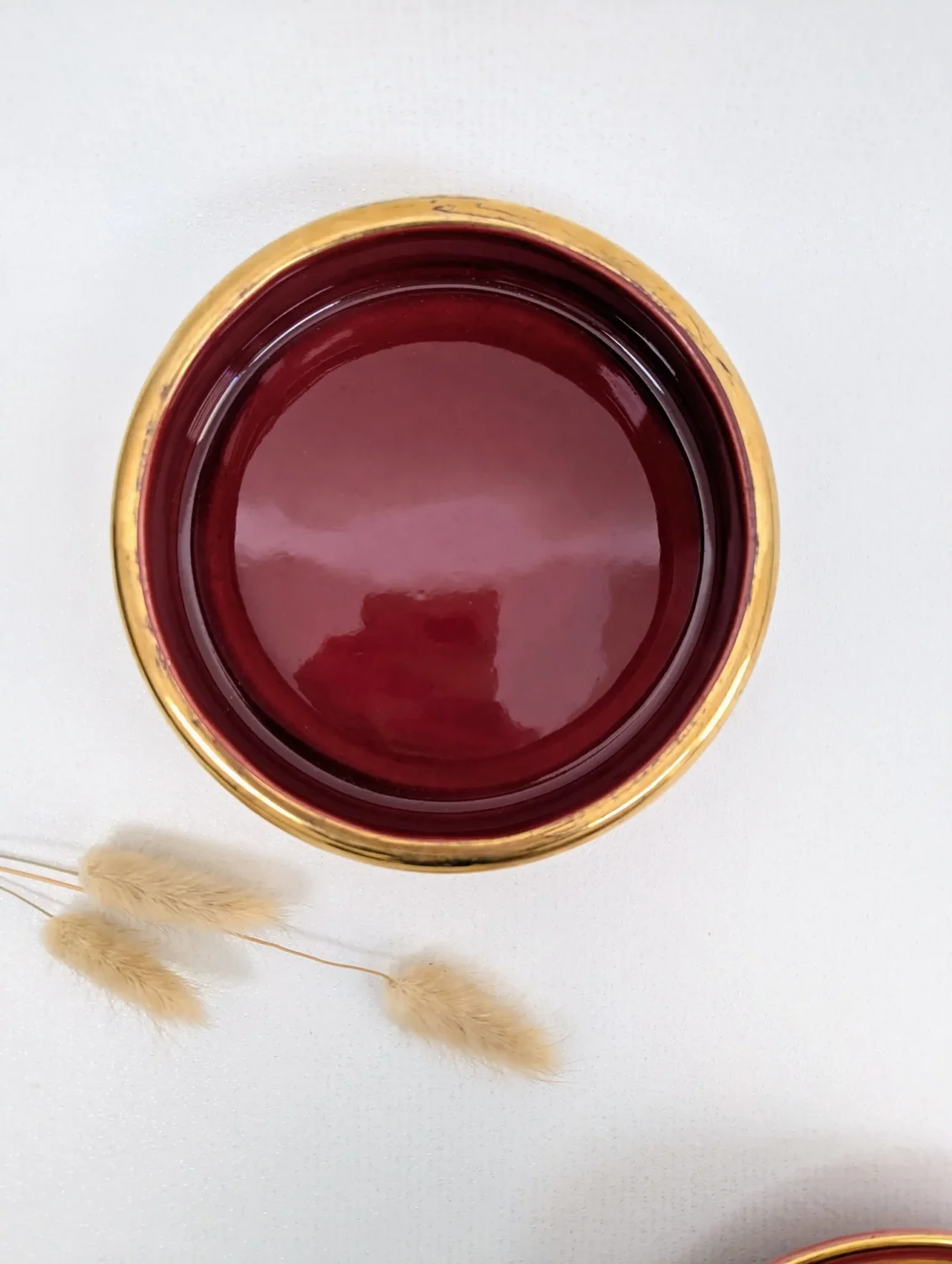 On aime le design élégant et rétro de l’ Art déco, l’association des couleurs bordeaux crème et du doré.