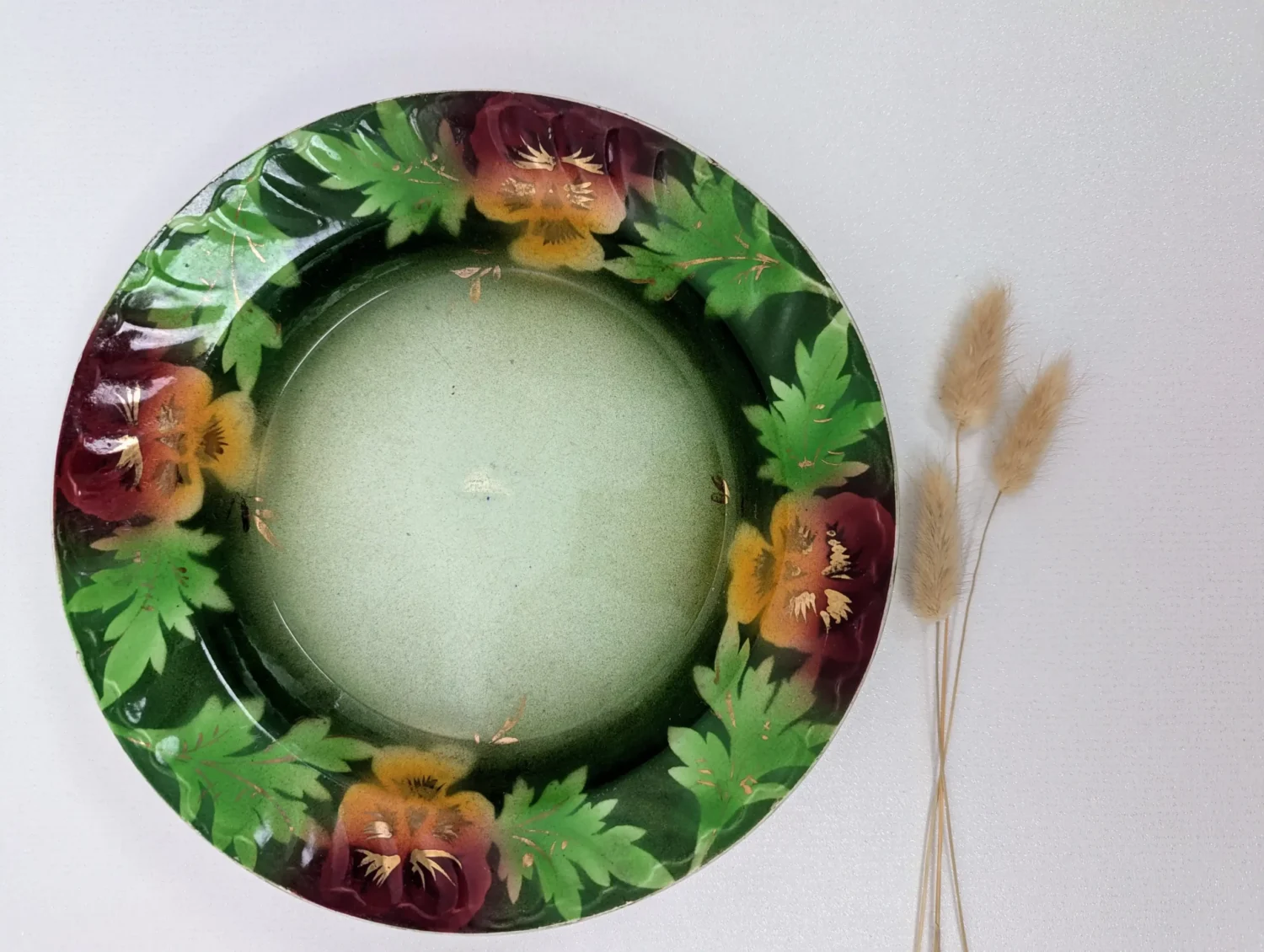 Antique Terre de Fer dish signed Choisy Le Roi manufacture dating from the late 19th century. An original and rare Terre de Fer dish with its colorful floral motifs and fine gilding. We love its shimmering colors and gilding details. A 26 cm diameter antique dish that will bring charm and elegance to your table. Note a small firing flaw in the center and some faded gilding, but overall fine condition considering its age.