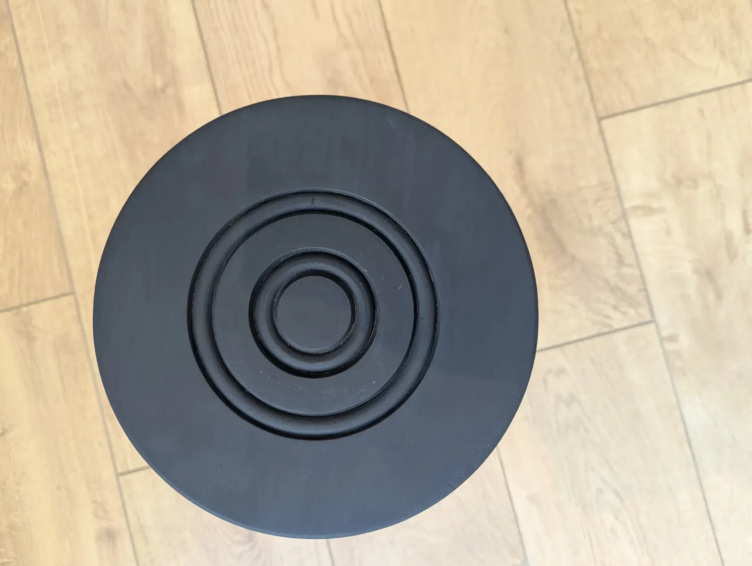 We love the 3 feet with their original curved shape, the 24 cm diameter tray with its concentric circle details and the matte black color for a touch of modernism.