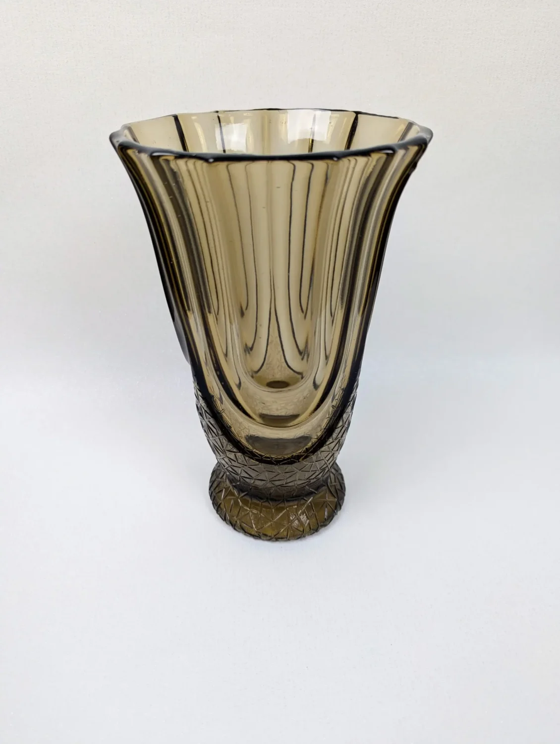 Elégant vase Art déco en verre fumé vintage, modèle LUXOR, des années 30.