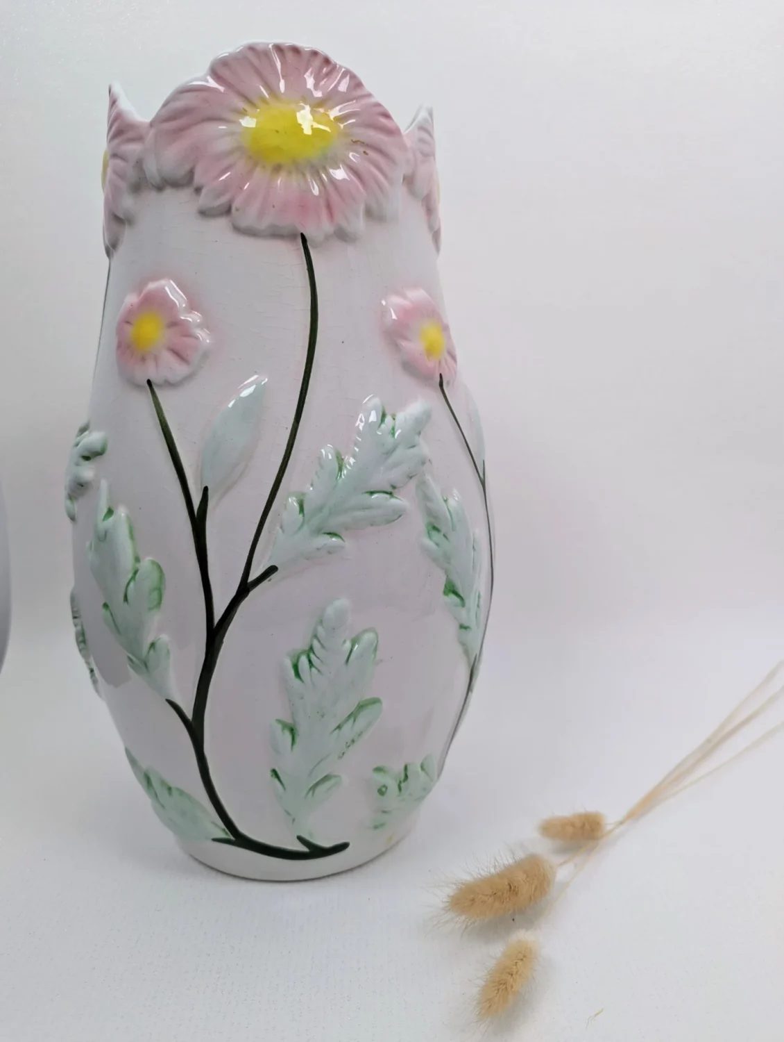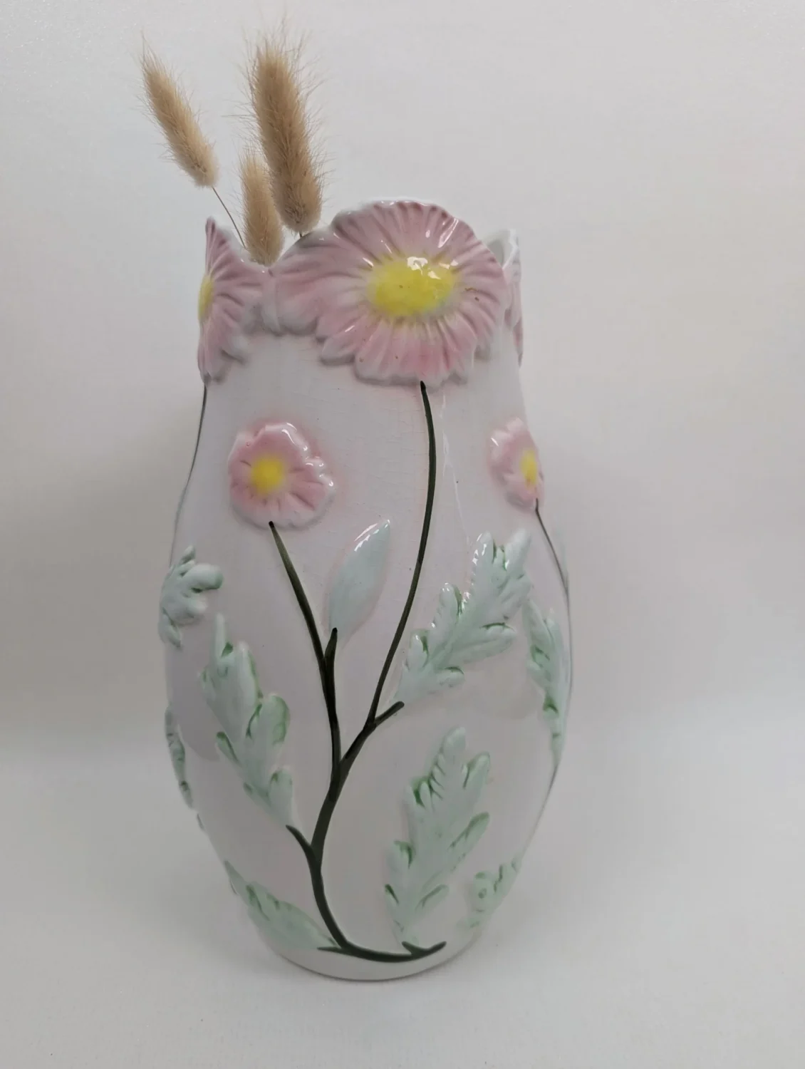Vase en barbotine fleurs vintage : fraîcheur florale et charme rétro chic