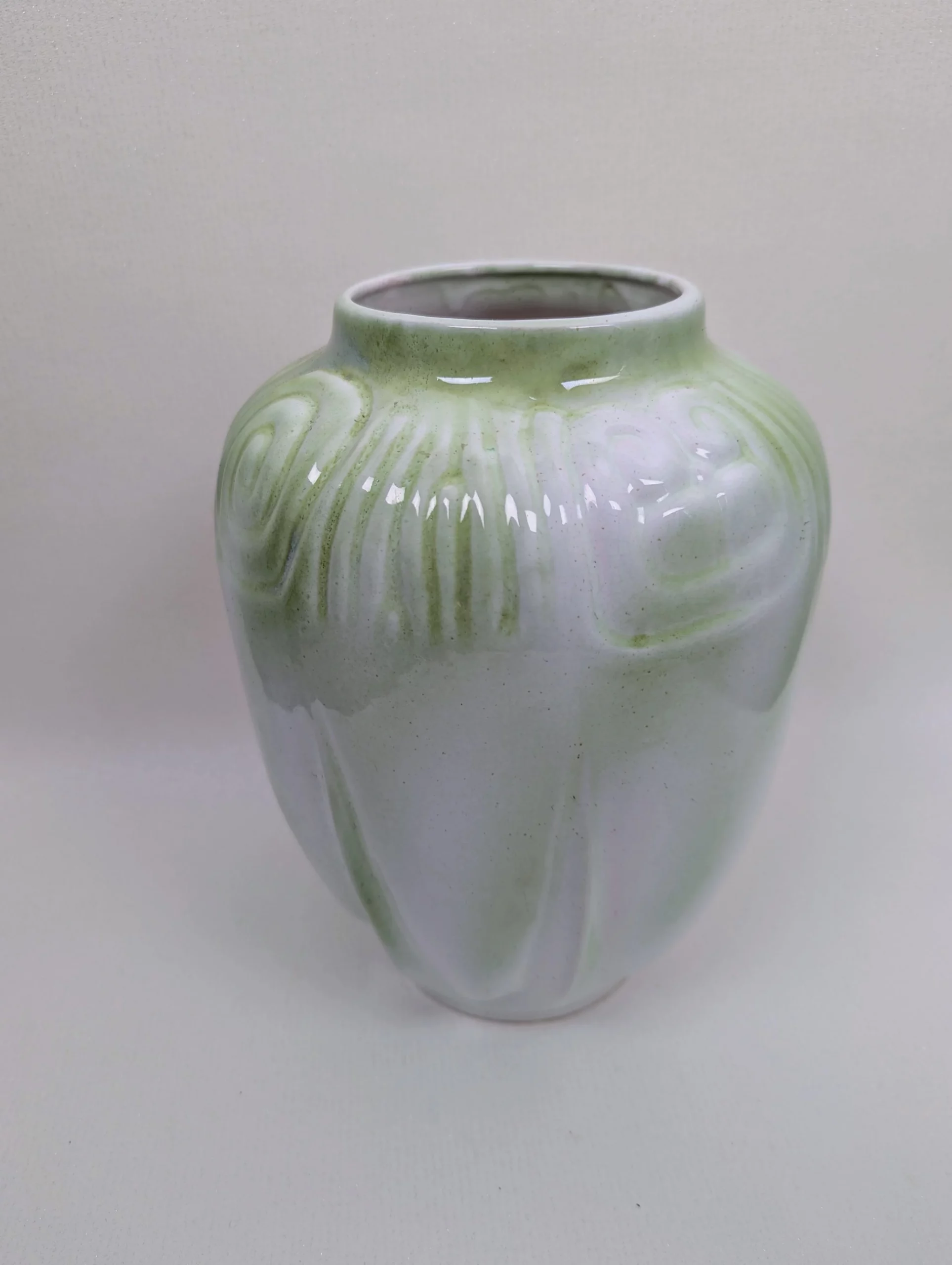 - Vase Art Nouveau en barbotine vert tendre, hauteur 27 cm