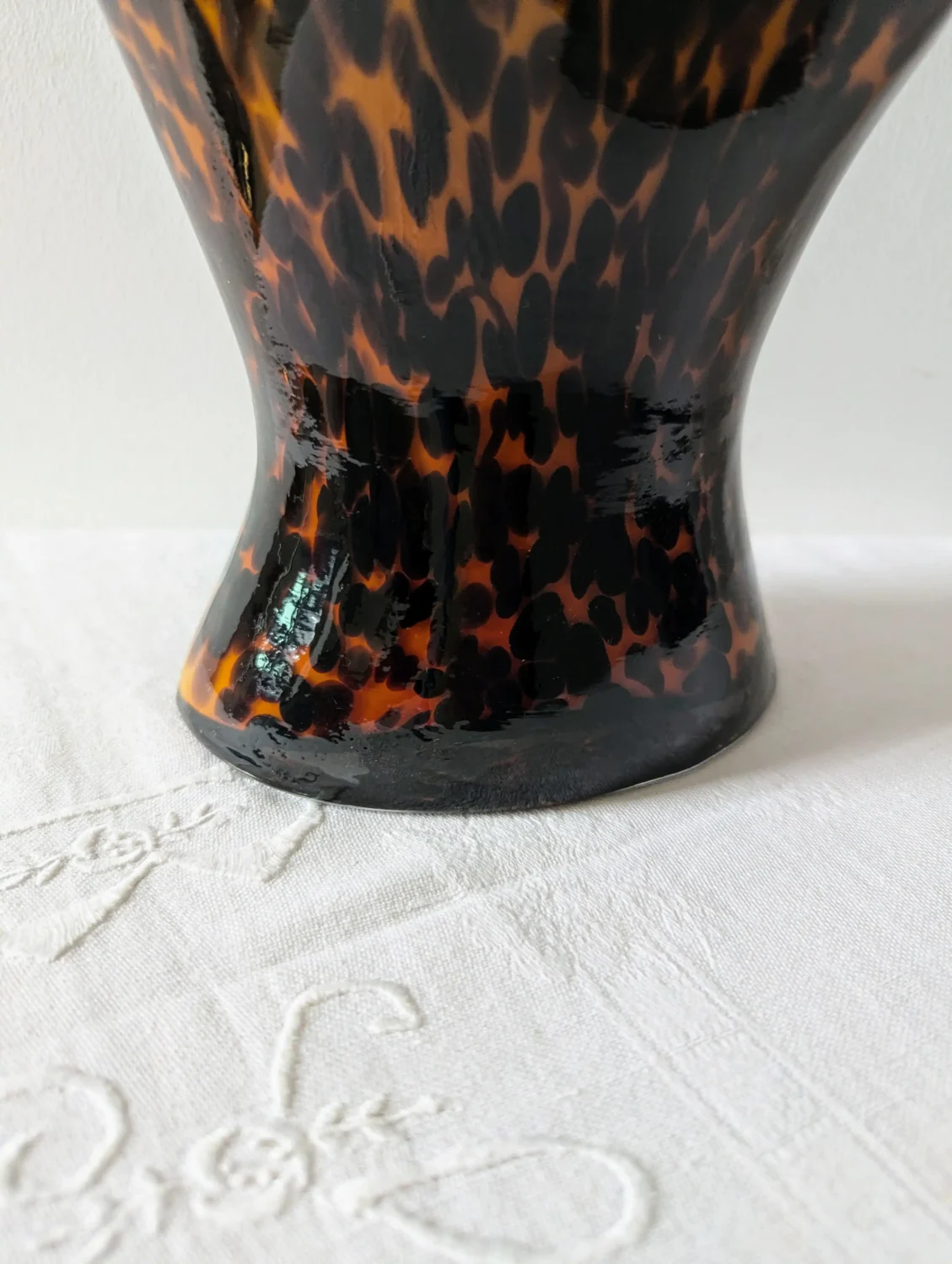 Pièce décorative, au verre ambre profond et au motif léopard iconique.