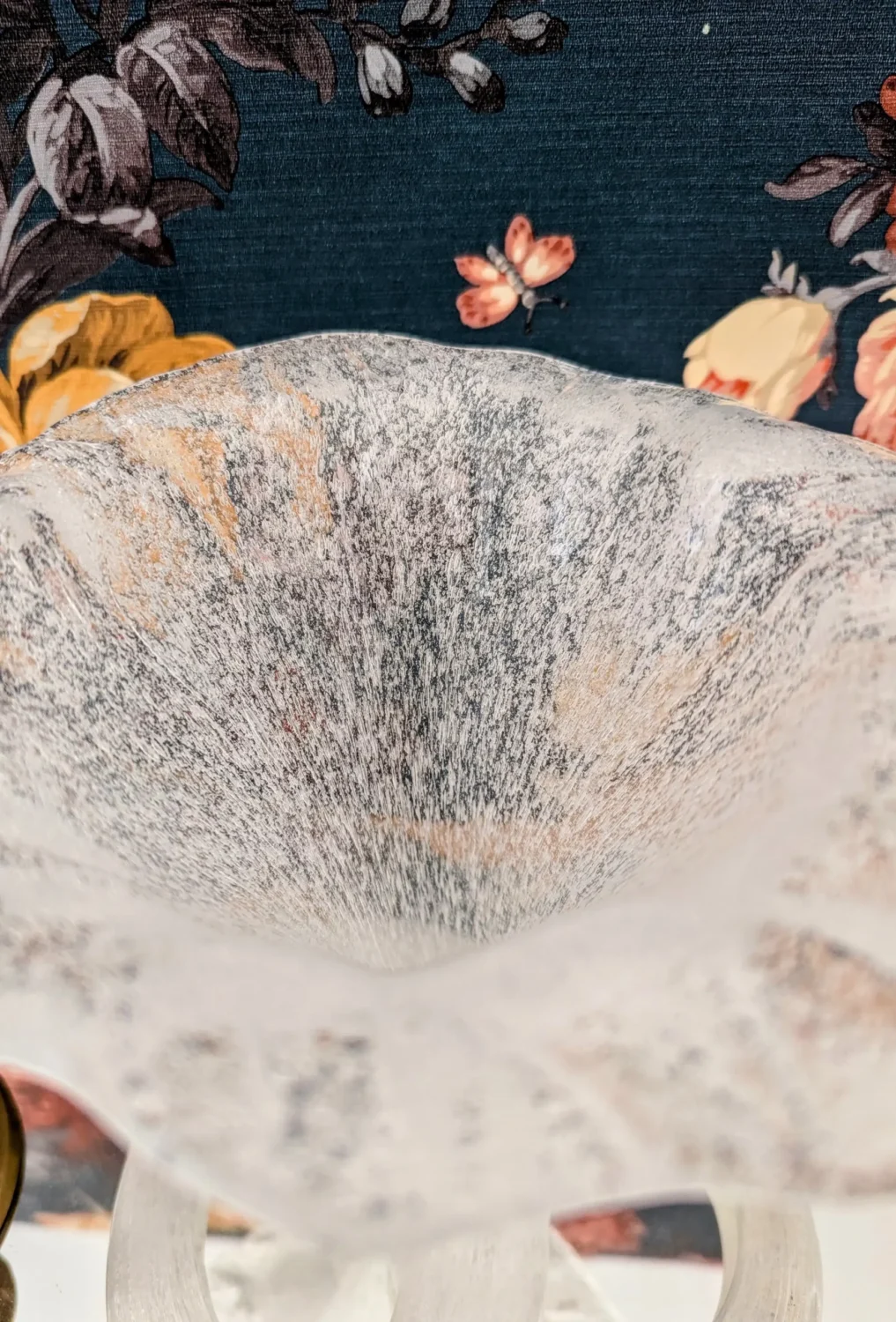 Ce vase vintage en verre soufflé, inspiré d’une fleur en éclosion, apporte élégance, poésie et lumière à votre décoration, avec ou sans bouquet.