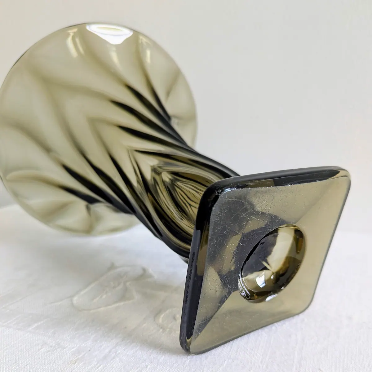 Vase vintage verre fumé torsadé style Art Déco – Années 70 Authentique