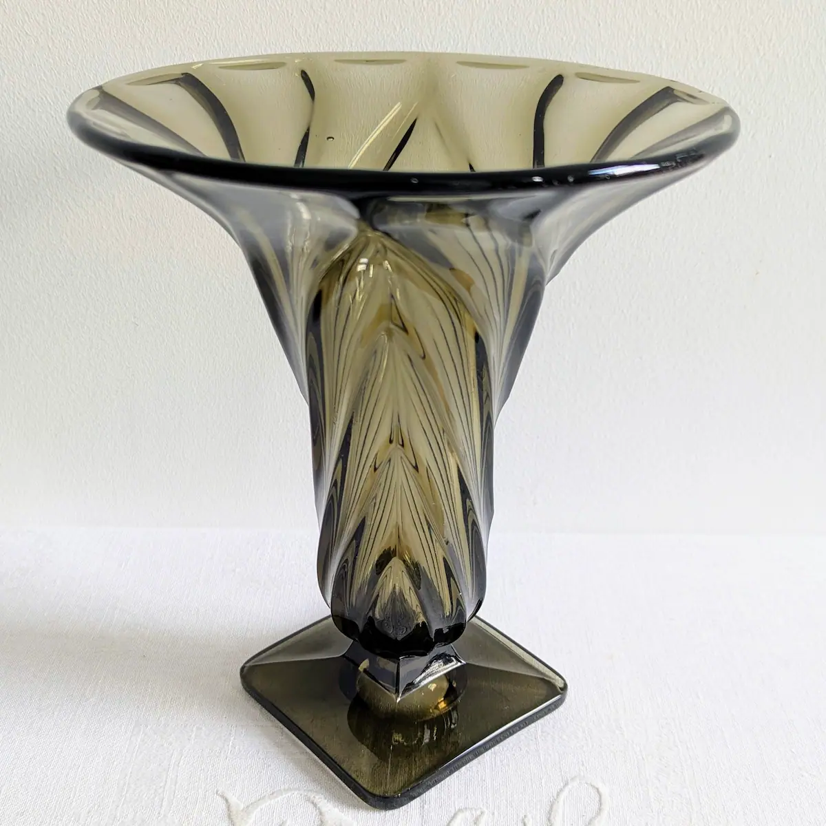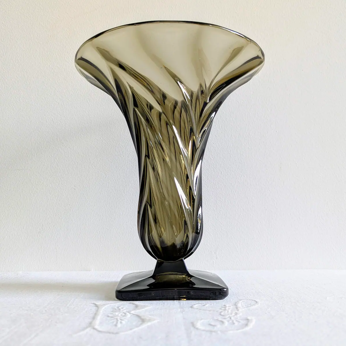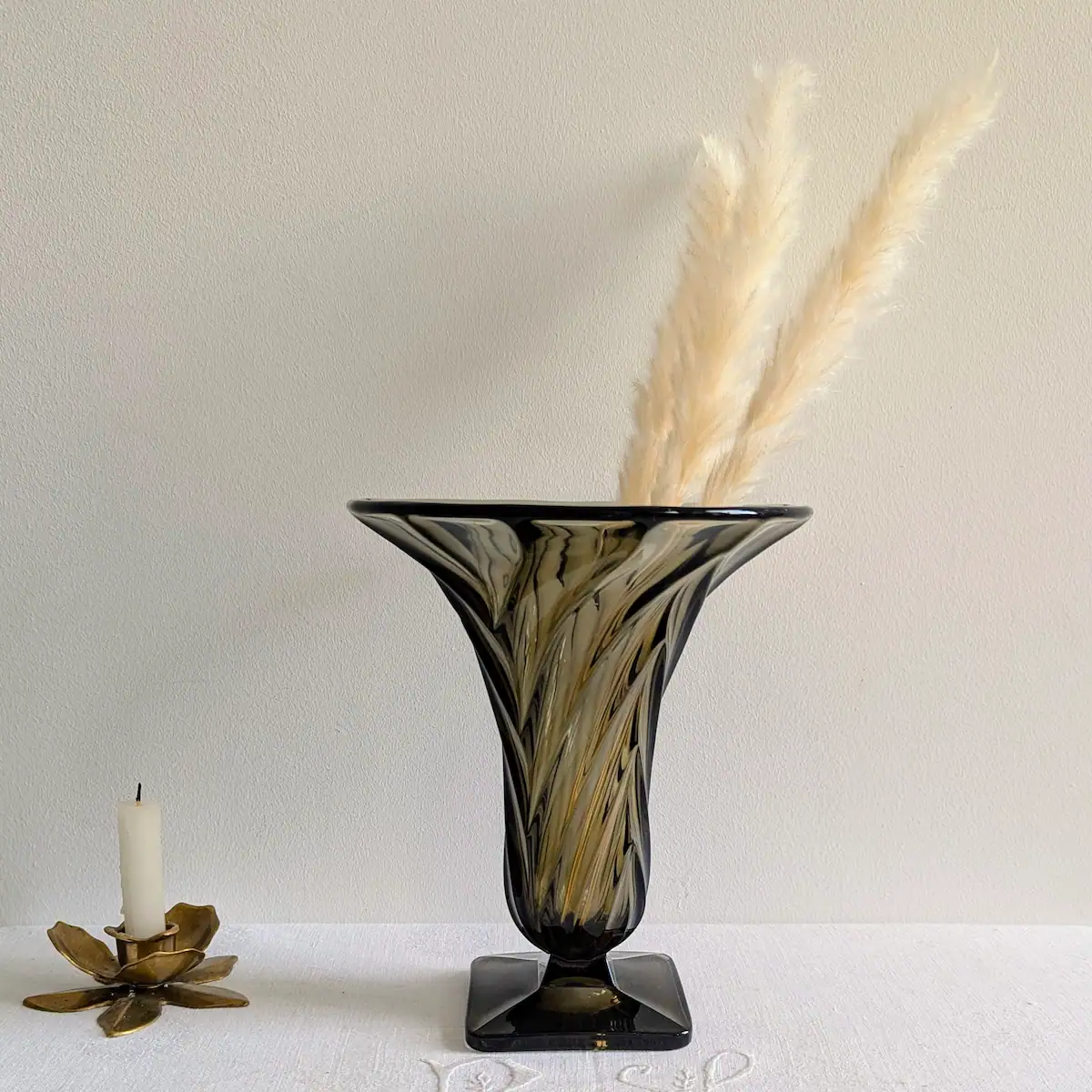 L’héritage Art Déco du Vase vintage verre fumé torsadé