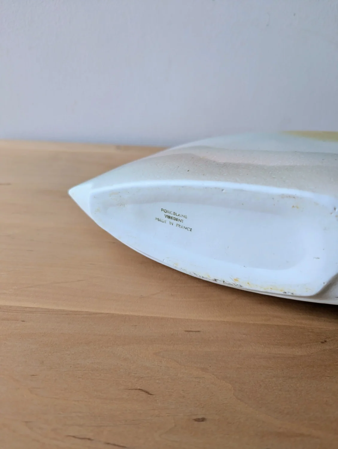 D’une part, la maison Virebent, reconnue depuis le XIXᵉ siècle pour son expertise dans la porcelaine, signe ici une pièce qui allie qualité et créativité. D’autre part, le modèle Virgule est devenu une icône du design vintage, recherchée par les collectionneurs et amateurs d’objets décoratifs rares.