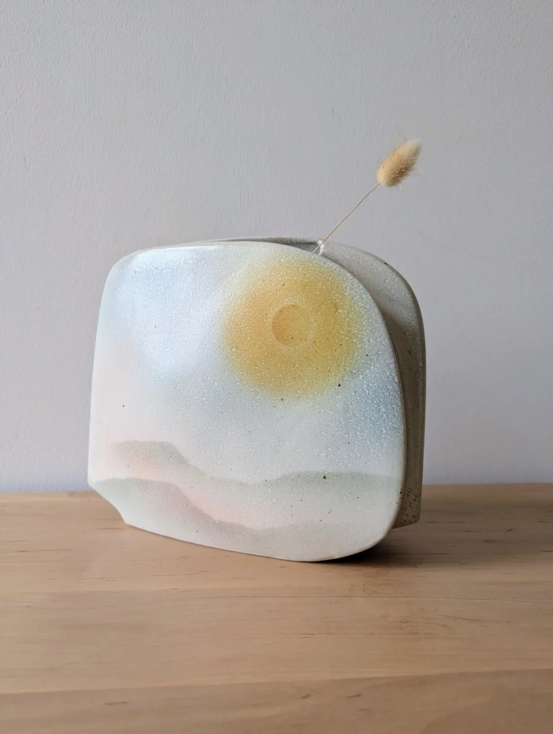 De plus, ce vase est parfait pour accueillir des fleurs séchées, des tiges naturelles ou même des compositions graphiques, grâce à sa forme asymétrique qui offre un équilibre visuel délicat. En outre, il se marie aussi bien avec une décoration minimaliste qu’avec un intérieur bohème chic ou moderniste.