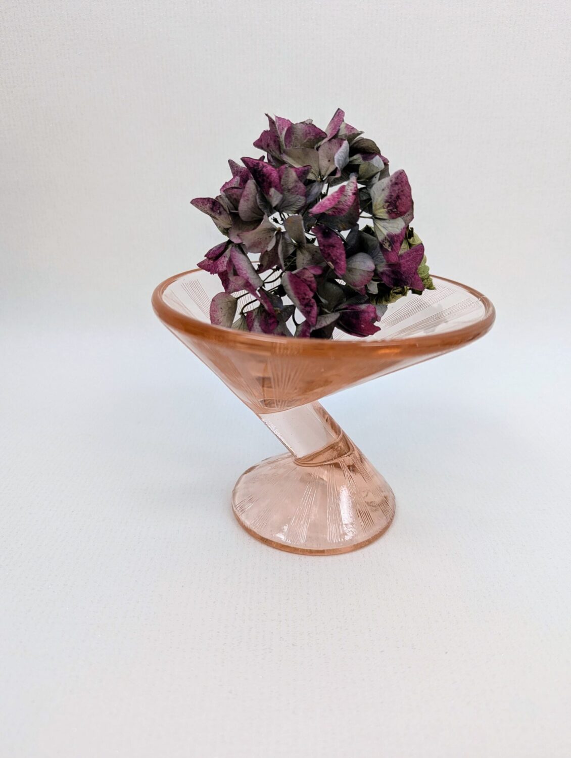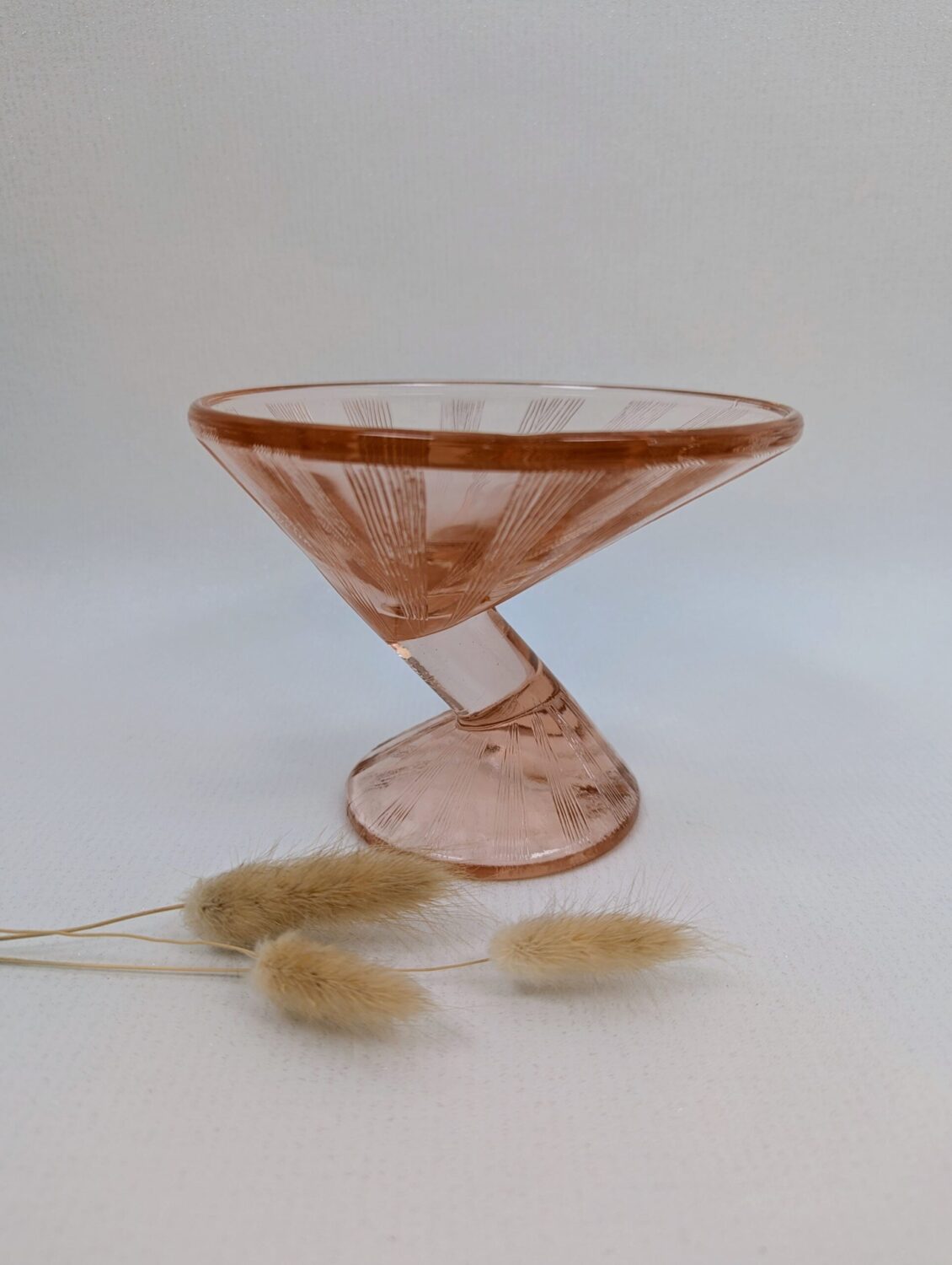 Ce verre à Martini Art Deco rosé vintage a aussi toute sa place dans une décoration inspirée des années folles. Il ajoute une touche précieuse et féminine à tout intérieur. De plus, sa couleur douce contraste avec des matières brutes comme le bois ou métal.