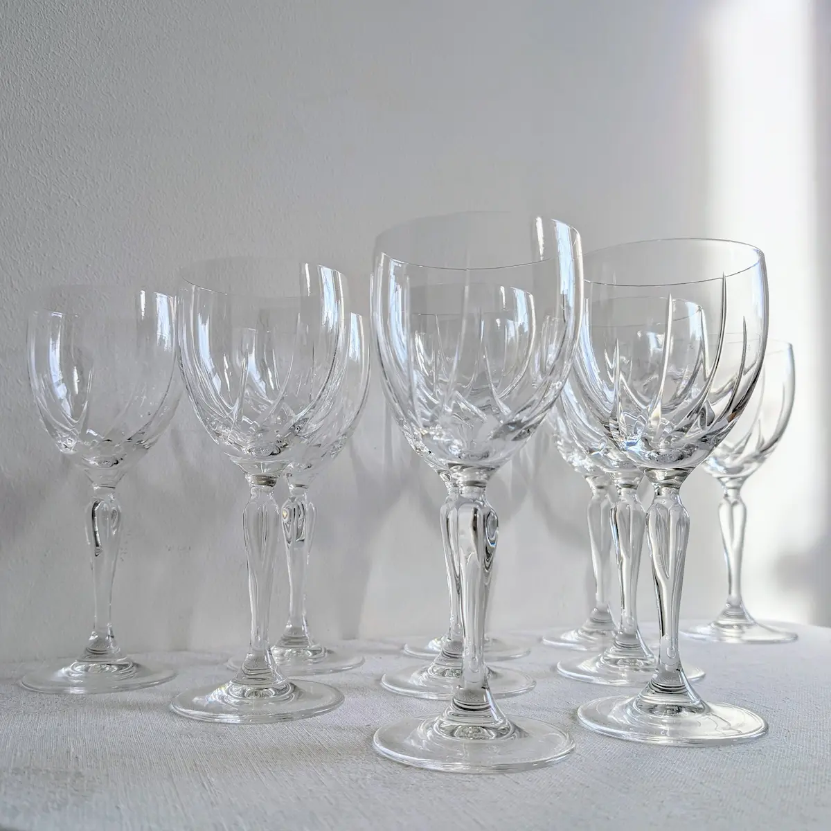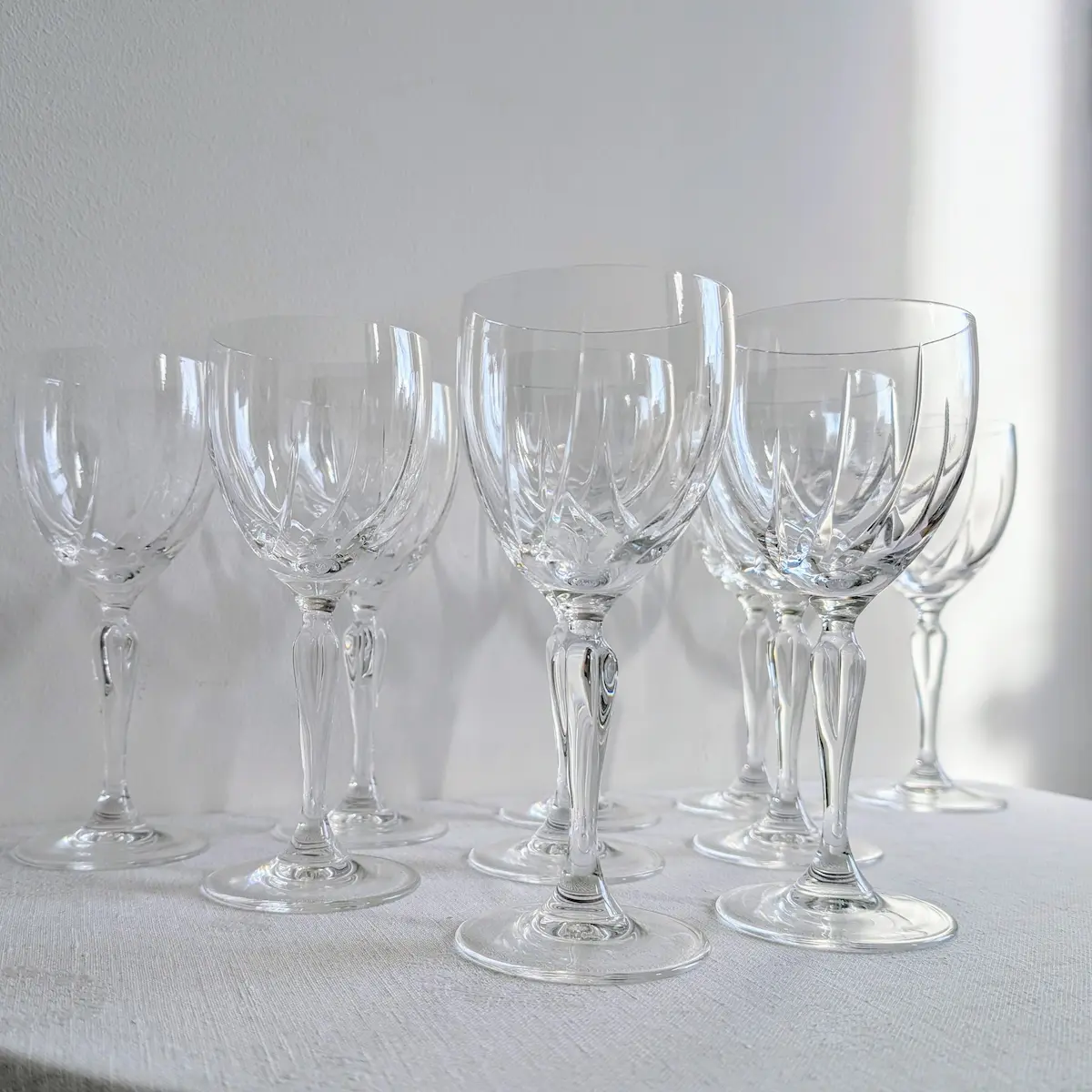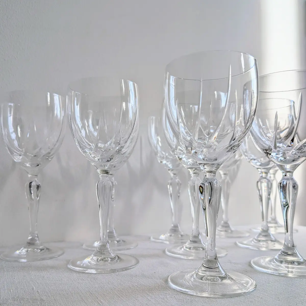 Service de 12 verres à vin en cristal taillé vintage et authentique