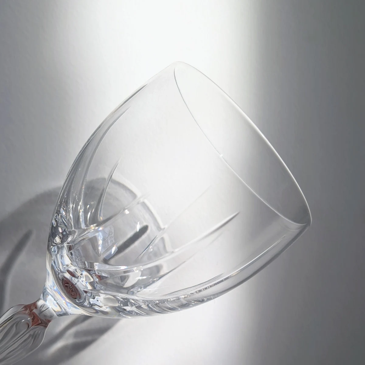 Le cristal, contrairement au verre ordinaire, possède une teneur en plomb qui lui confère cet indice de réfraction si particulier. Ici, la taille à côtes plates n’est pas qu’un ornement esthétique ; elle est conçue pour diffracter la lumière de manière optimale. Lorsqu’on examine le pied, on remarque la netteté des arêtes, signe d’un travail de meulage de haute précision. Ce service est un objet authentique qui n’a rien perdu de sa superbe malgré les décennies.